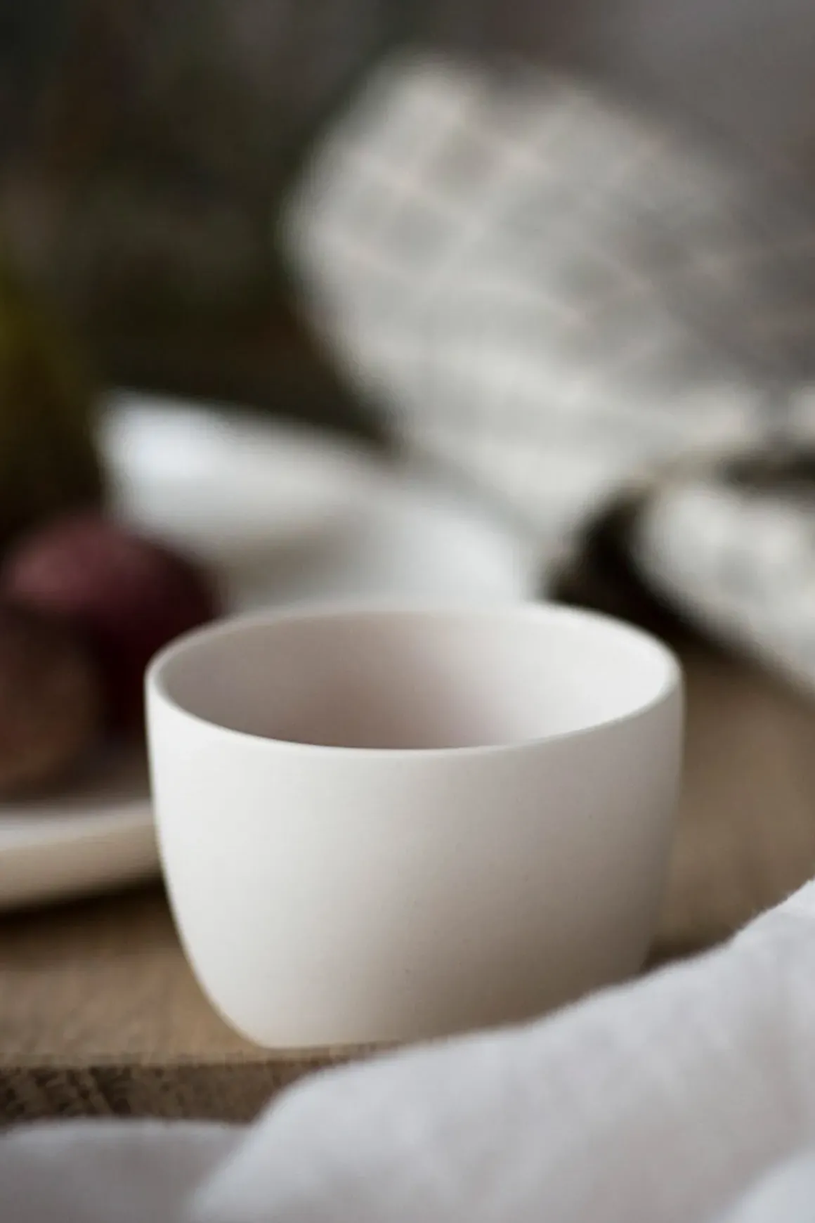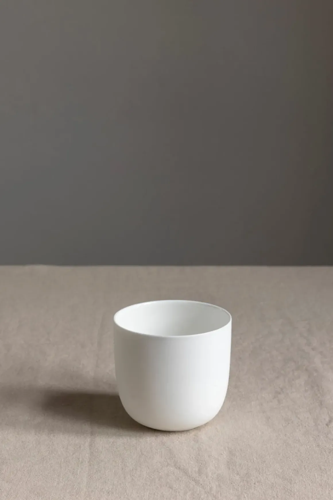 Porselenskopp uten hank fra Serax, designet av Studio Piet Boon. Koppen er hvit med en pen matt overflate, og passer perfekt til en kopp kaffe. Base-serviset er enkelt med rent design som passer inn i ethvert hjem, og blandet med ulike typer servise. Kombiner med andre deler av Base-serviset for en fullført stil til bordet ditt.