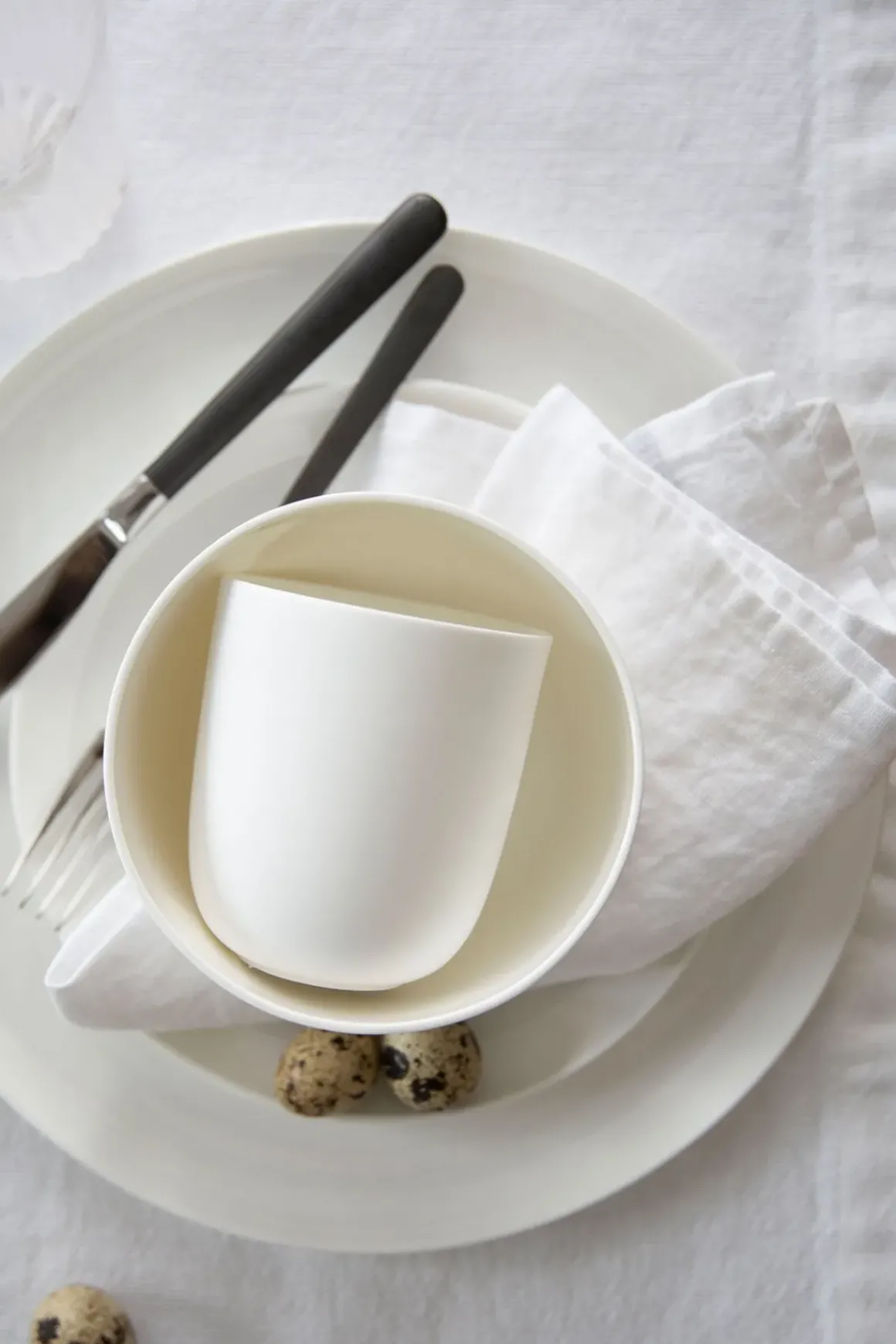 Ildfast tekopp fra Serax i hvit keramikk. Koppen er en del av Base-serviset til Serax, og er glasert på innsiden og matt utvendig. Designet i samarbeid med den annerkjente designeren Piet Boon. Rommer opp til 35cl.