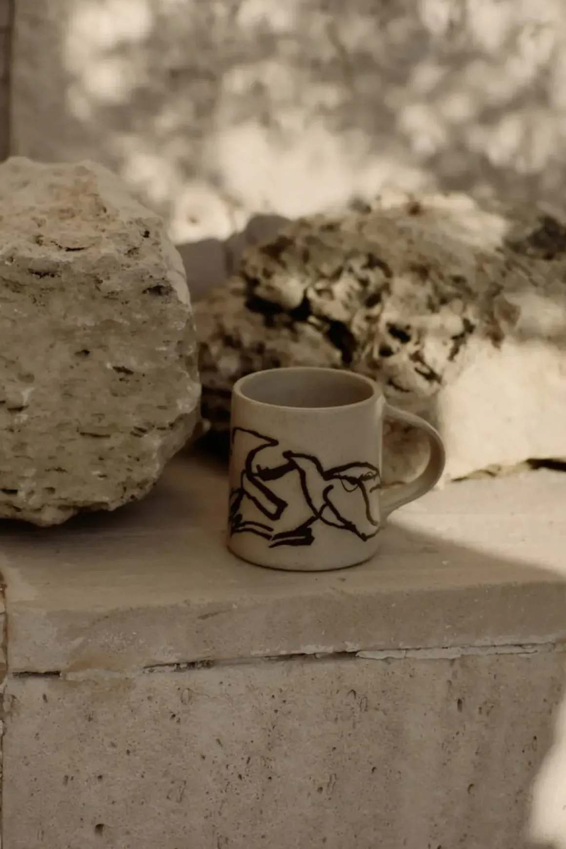 Vuelo-koppen fra Ferm Living x Utzon er en del av Can Lis-samarbeidet, inspirert av arkitekten Jørn Utzons hjem på Mallorca. Koppen gjenskaper de karakteristiske fugleskissene han tegnet der, og navnet Vuelo, som betyr «flygning» på spansk, fanger fuglemotivets lette og dynamiske uttrykk. Hver kopp er laget av glasert keramikk og bærer tydelige spor av håndverk, noe som gir den et unikt, håndstøpt preg. Fuglemotivet er skapt med en tradisjonell batikteknikk, der voks motstår glasuren og danner intrikate mønstre som fremhever koppens håndverksmessige karakter.
