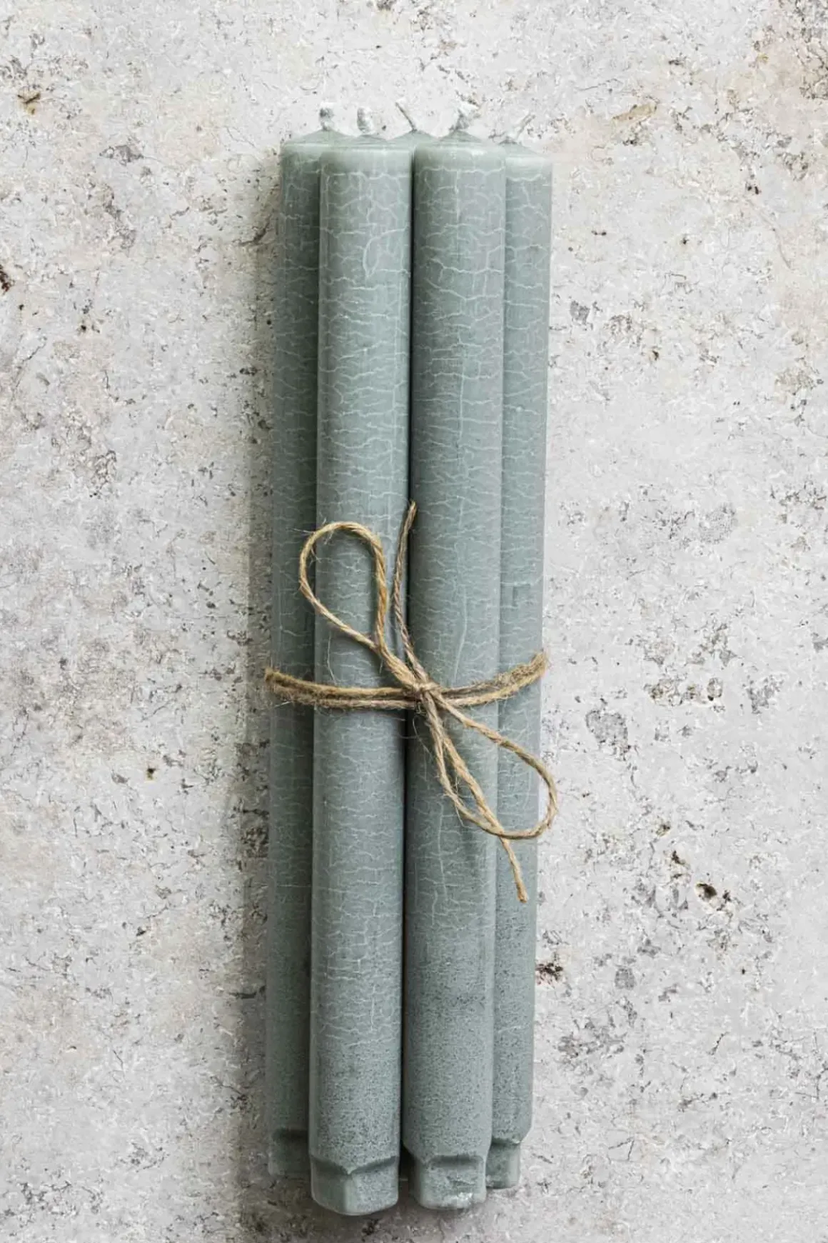 Stearinlys fra danske Lysstøberiet i en dus grønnfarge. Lyset har en flott, matt og rustikk overflate. Det er laget av ren vegetabilsk stearin som gjør at lyset brenner med en klar og rolig flamme. Stearinlyset passer perfekt i en lysestake, og du kan mixe og matche med lys i andre farger og størrelser.