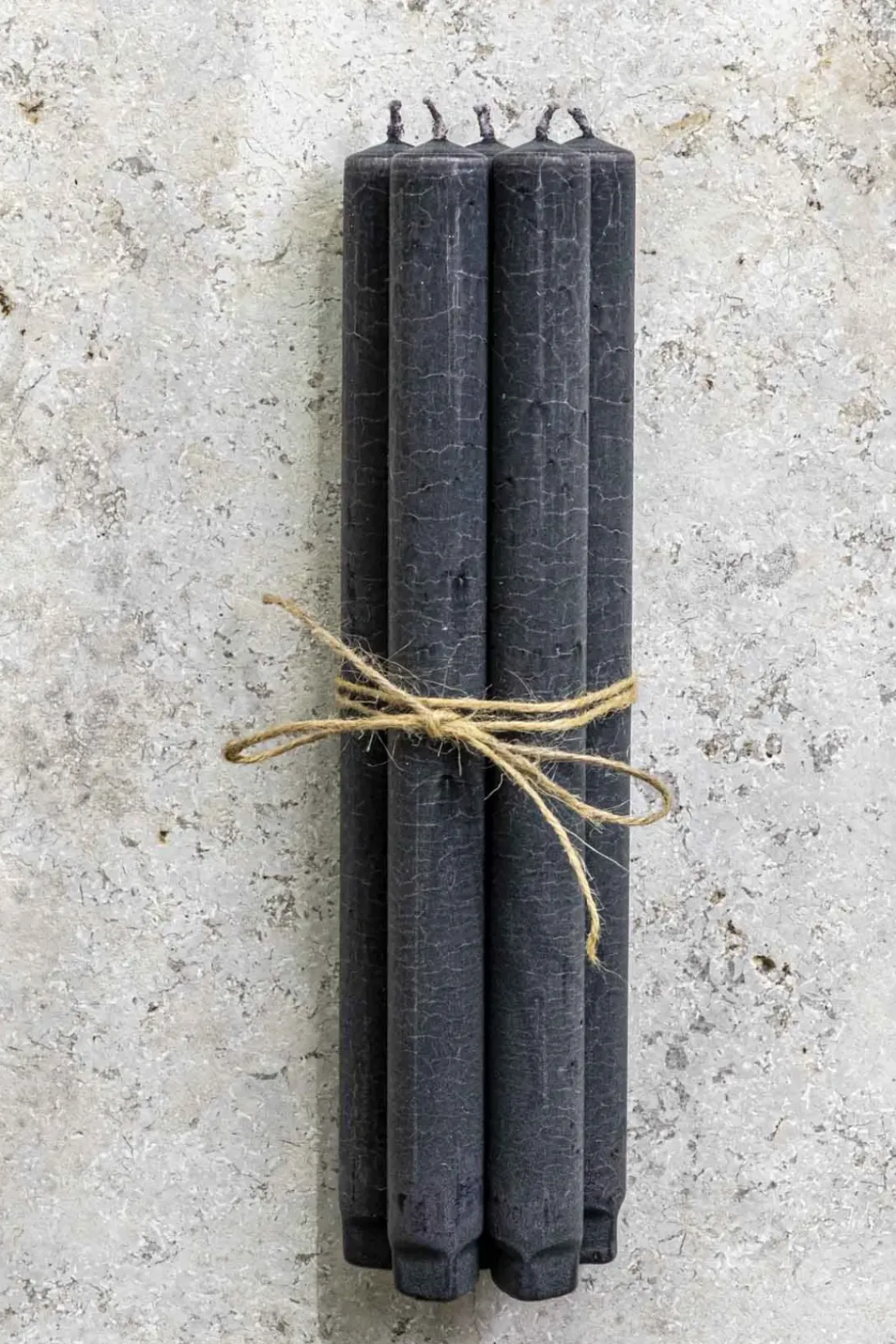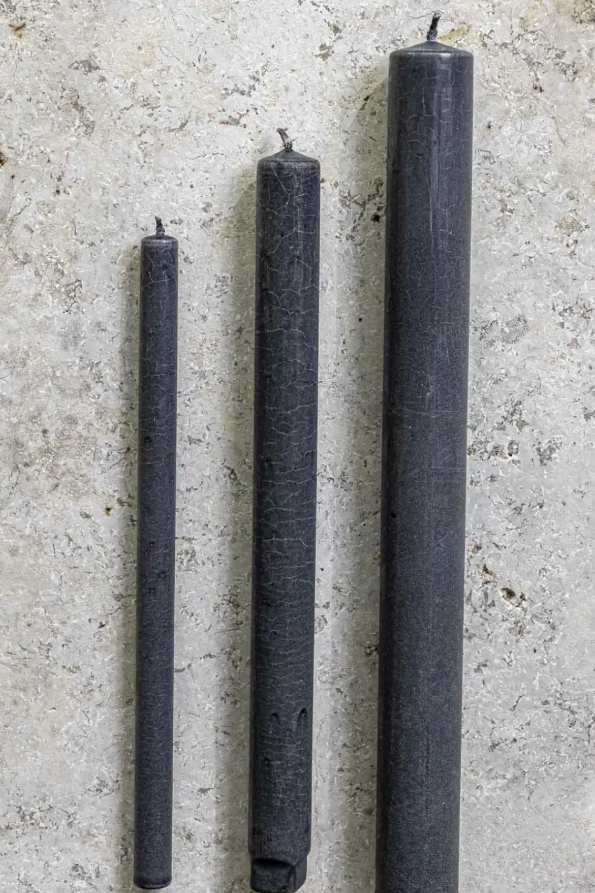 Stearinlys fra danske Lysstøberiet i sort. Lyset har en matt finish på overflaten. Innsiden av lyset er i en lysere gråtone enn utsiden, som blandes fint sammen når det smelter. Det er laget av ren vegetabilsk stearin som gjør at lyset brenner med en klar og rolig flamme. Stearinlyset passer perfekt i en lysestake, og du kan mixe og matche med lys i andre farger og størrelser.