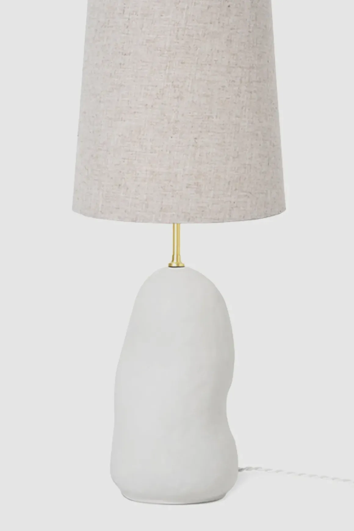 Særegen bordlampe fra Ferm Living med en kunsterisk edge. Hebe er laget av keramikk og sokkel av messing. Hebe har en skulpturell form inspirert av stener fra naturen og en matt teksturert overflate som tilfører ethvert rom en rå og naturlig look. Lampeledningen er vridd, i hvitt stoff, er 2 meter lang og har dimmer.