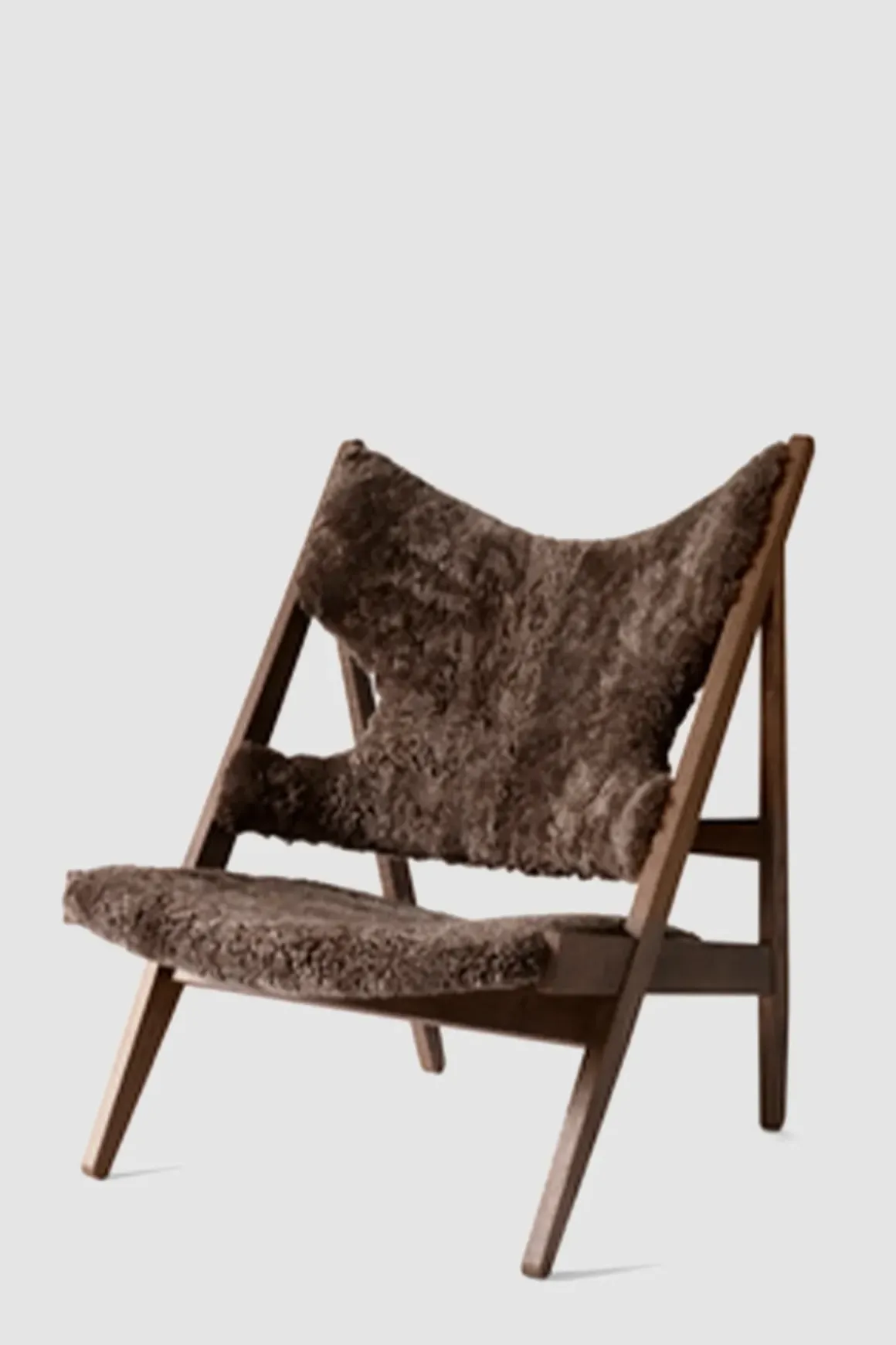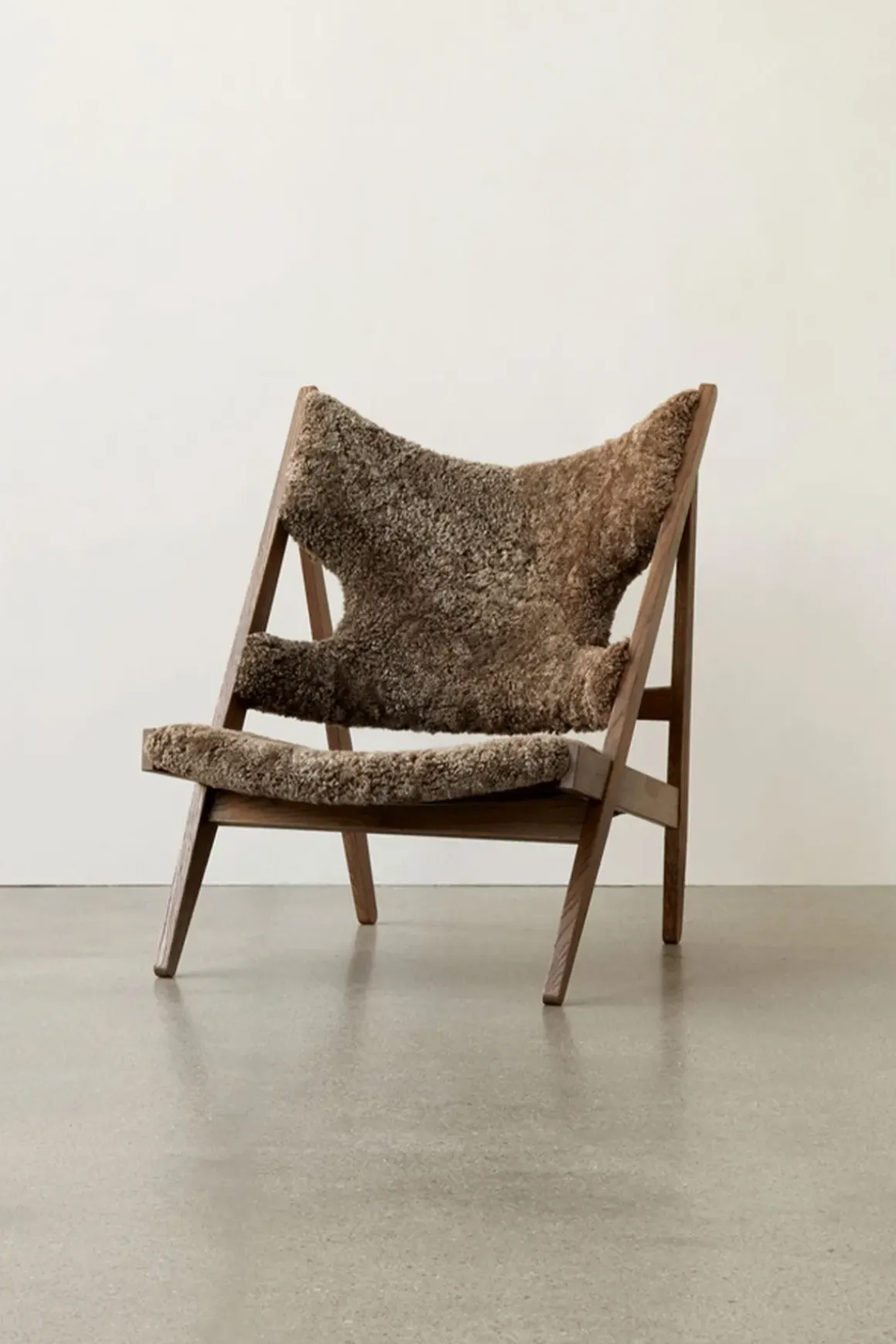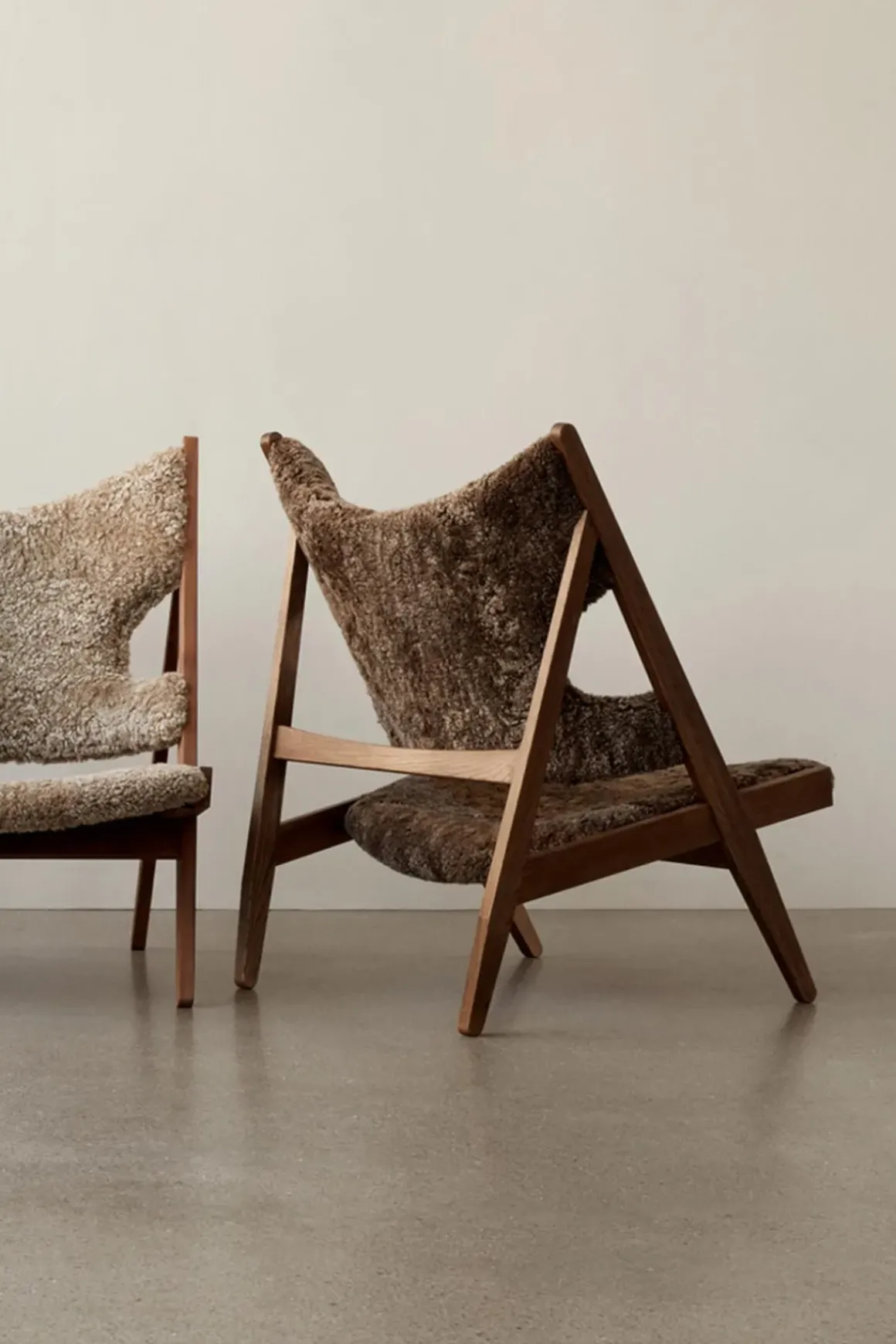 Knitting Lounge Chair, designet av Ib Kofod-Larsen i 1951. Stolen er en gammel klassiker som nå relanseres, deres første relansering av moderne danske ikoner. Stolen er håndlaget i Sverige av håndverkere som kombinerer det beste av tradisjonelle og klassiske teknikker med materialer av høyeste kvalitet. Stolen er like behagelig som den ser ut som, og er oppkalt etter utskjæringene på siden av ryggen som gir optimal komfort når du leser eller strikker. Setet er trukket med myk og deilig saueull for ekstra varme og kos. Stolens lekne karakter og gjennomtenkte design gjør den til et perfekt valg for alle interiørelskere.
