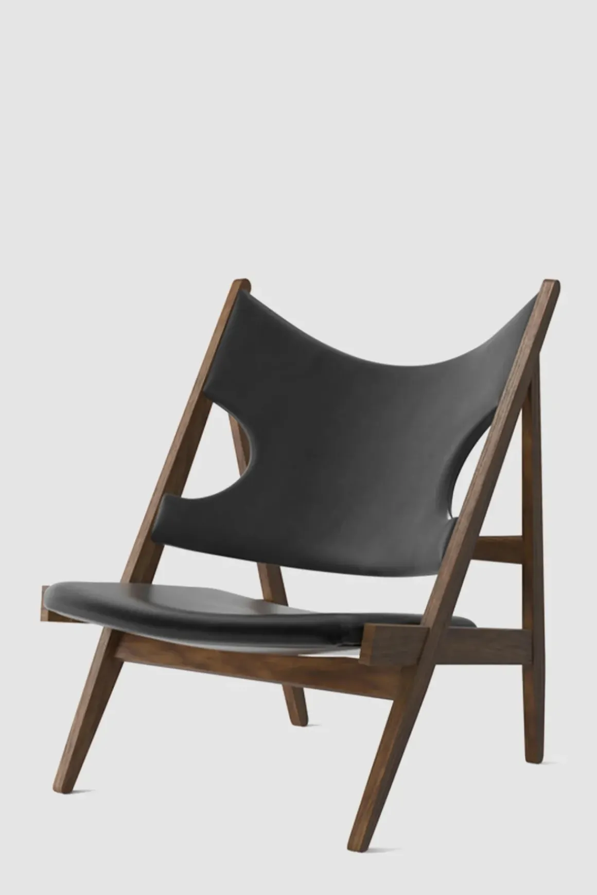 Knitting Lounge Chair, designet av Ib Kofod-Larsen i 1951. Stolen er en gammel klassiker som nå relanseres, deres første relansering av moderne danske ikoner. Stolen er håndlaget i Sverige av håndverkere som kombinerer det beste av tradisjonelle og klassiske teknikker med materialer av høyeste kvalitet. Stolen er like behagelig som den ser ut som, og er oppkalt etter utskjæringene på siden av ryggen som gir optimal komfort når du leser eller strikker. Setet er trukket med mykt og vakkert skinn som får en fantastisk patina etterhvert. Stolens lekne karakter og gjennomtenkte design gjør den til et perfekt valg for alle interiørelskere.