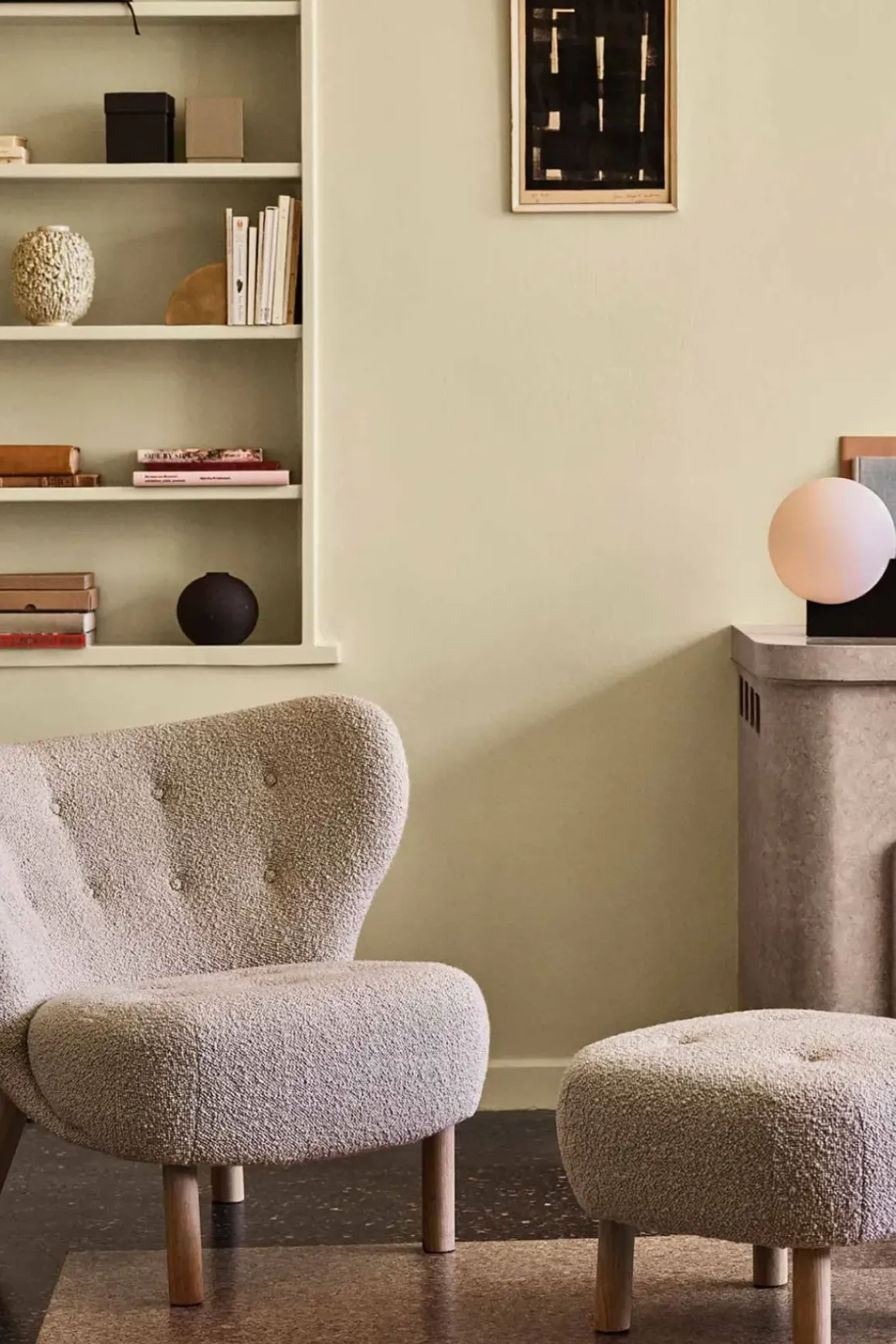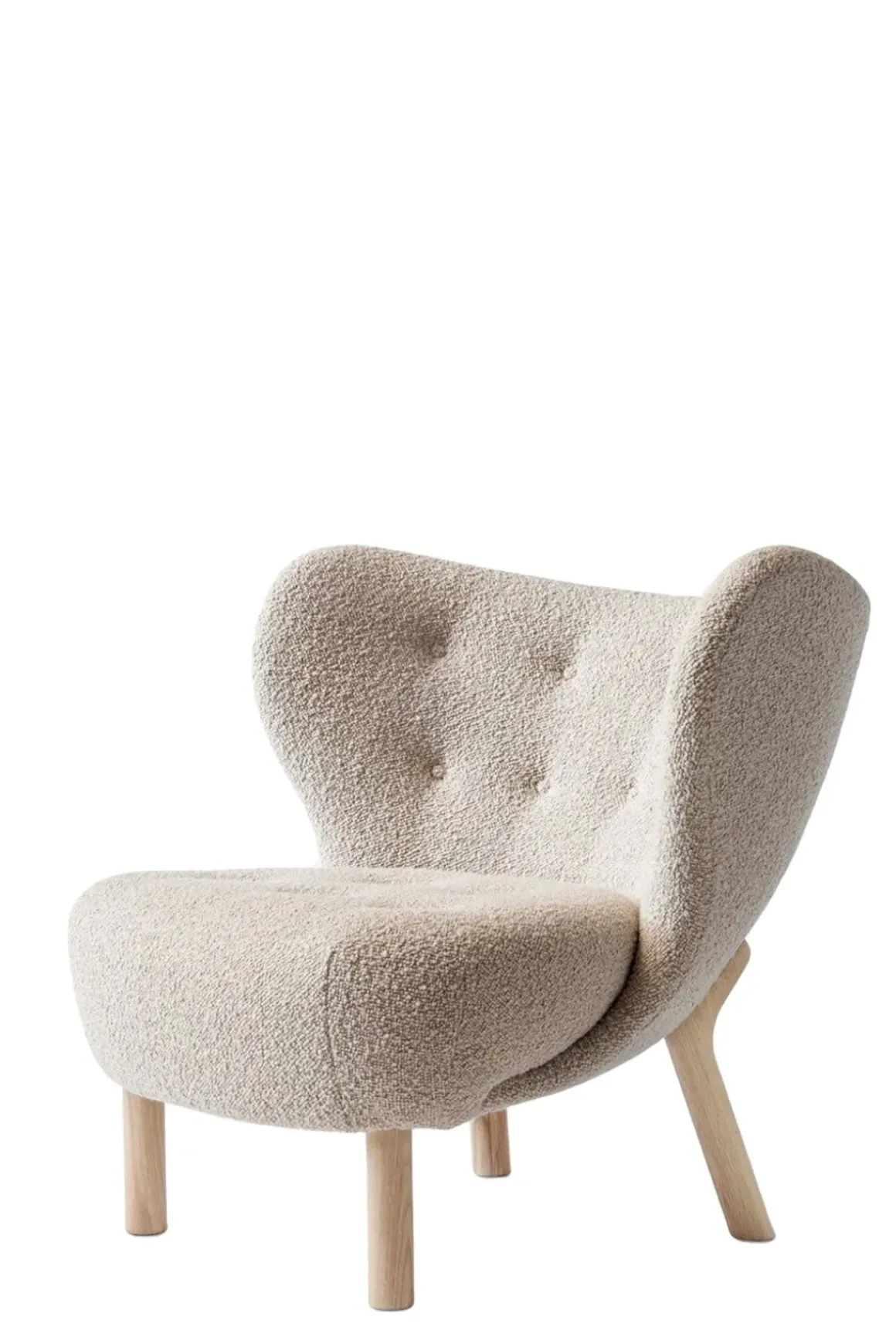 - Materiale: Eik, CMHR-skum, polyestervatt, trekk i bouclé-ull / viskose