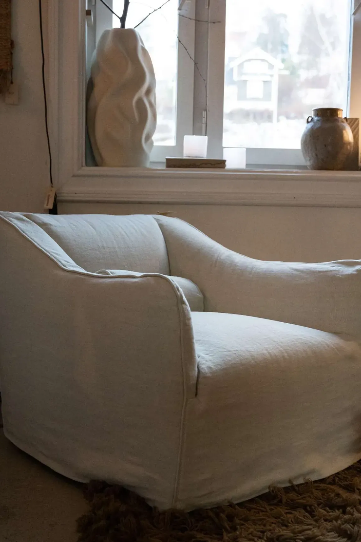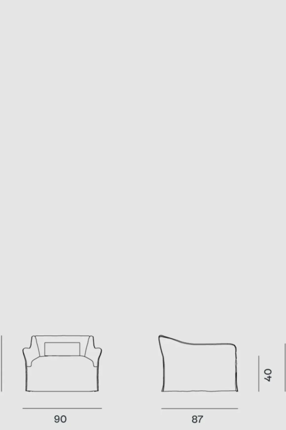 Saia 05 lenestol, designet av portugisiske David Lopez Quincoces for italienske Gervasoni. Saia-kolleksjonen består av balanserte linjer, skapt fra et klassisk ideal med en moderne vri. Navnet, som betyr «skjørt» på portugisisk, illustrerer dets karakteristiske trekk: et avtagbart trekk som faller lett og elegant til bakken og fester seg til strukturen til sofaen. Saia består av elegante, allsidige produkter med interessante, myke kurver: en invitasjon til å sitte komfortabelt, bli omfavnet og pakket inn i maksimal komfort. Lenestolen er trukket med polyuretanskum og setene har en pocketfjærinnsats for ekstra komfort, mykhet og holdbarhet. Stolen har også en rørformet pute til korsryggen med deilig dunfyll. Avtagbart trekk. Saia er mulig å bestille i alle Gervasonis stoffer, bortsett fra 3D, Quilt Malta og Quilt Velour.