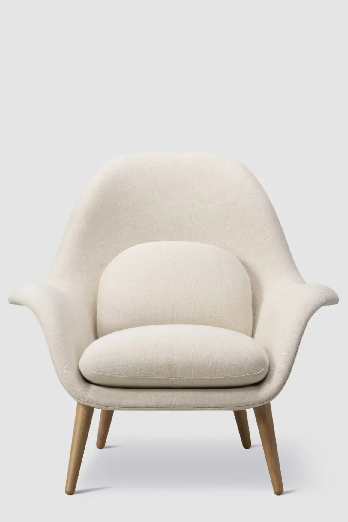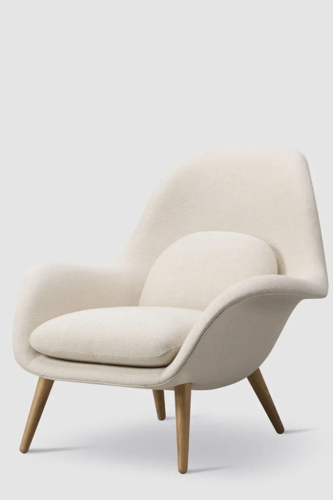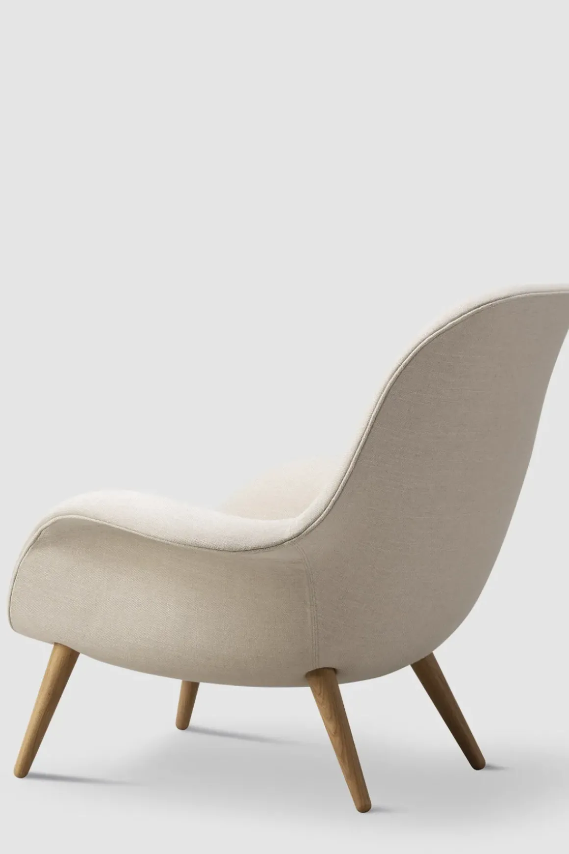 Swoon 1770 lenestol i ullstoffet Sunniva 811 fra Fredericia. Stolen er designet av Space Copenhagen som har klart å kombinere fantastisk sittekomfort med stilsikkert og varig design. Swoon har en organisk form med svært god støtte til ryggen og inviterer til umiddelbar avslapning, samtidig som designet er minimalistisk og stramt. Lenestolen gjør seg godt i stuen, på soverommet, og også i større resepsjonsområder og salonger. Swoon står utstilt på Bolina – kom gjerne innom for en prat og prøvesitt! Kan også bestilles med Ottoman puff i samme utførelse, for enda bedre komfort. Swoon er tilgjengelig med stolben i lakkert valnøtt, lakkert eik, beiset, røkt eik og sortlakkert eik.