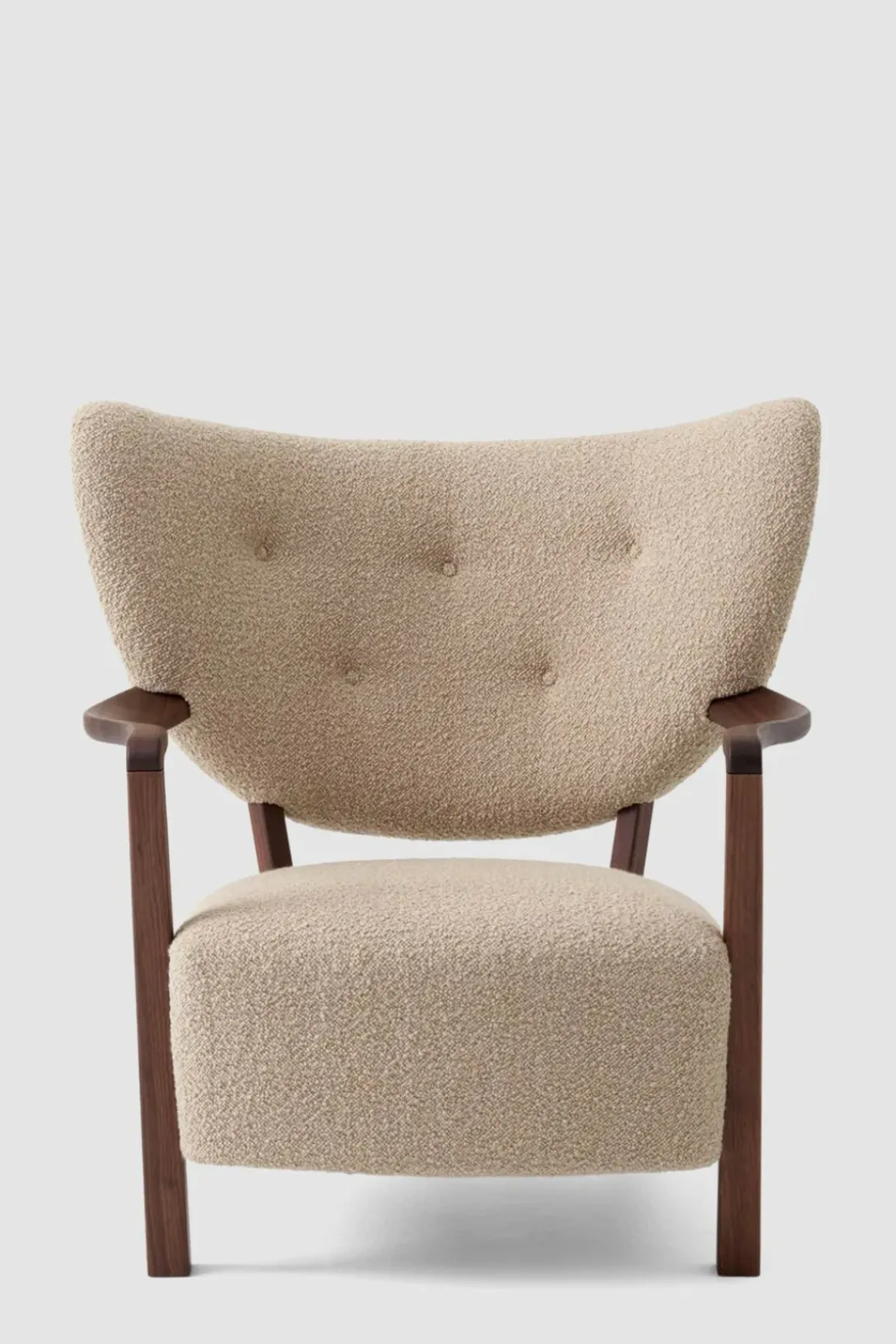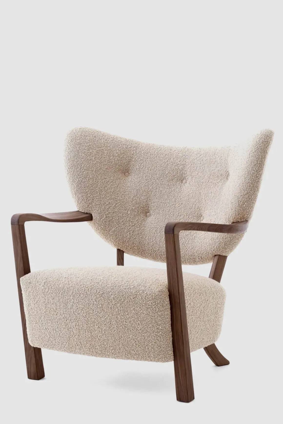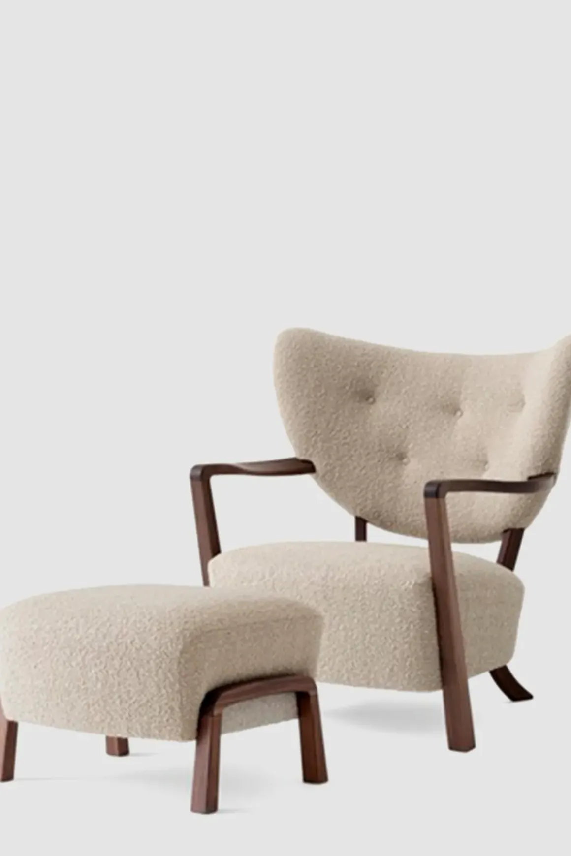 Finn roen med Wulff lenestol og puff fra u0026amp;Tradition. Wulff er en polstret loungestol som hyller de håndlagde designene fra 1930-tallet. Stolrammen er laget av massiv bøk og kryssfiner og deretter dekket med HR-skum og polyestervatt. Bena i heltre valnøtt er dreid, CNC-frest og oljet. Stolen har et luksuriøst, mykt trekk som dekker setet og ryggstøtten. Stolen er trukket i stoffet Karakorum; et boucléstoff med små løkker som kruser overflaten og tilfører bevegelse og personlighet. Wulff står for overlegent håndverk og enestående komfort. Loungestolens arkitektoniske form vil gi et stilig uttrykk til ethvert interiør og vil være et velkomment møbel i stua eller på soverommet. Den tilhørende puffen er håndlaget med ben av solid valnøtt og kommer i samme møbeltrekk som loungestolen. Bruk den enten som fotskammel til Wulff-stolen eller som en sjarmerende loungekrakk alene.