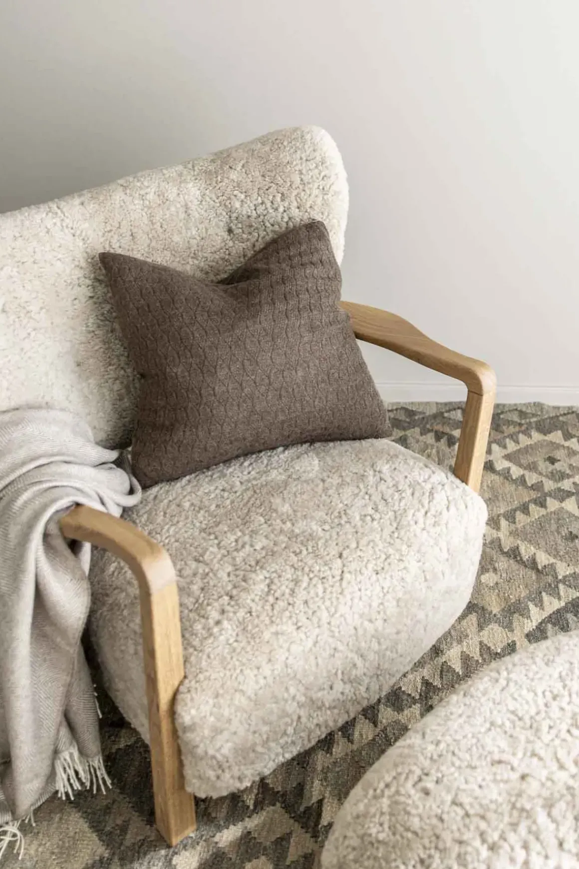 - Materiale: Oljet eik, HR-skum, polyestervatt og trukket med saueskinn.