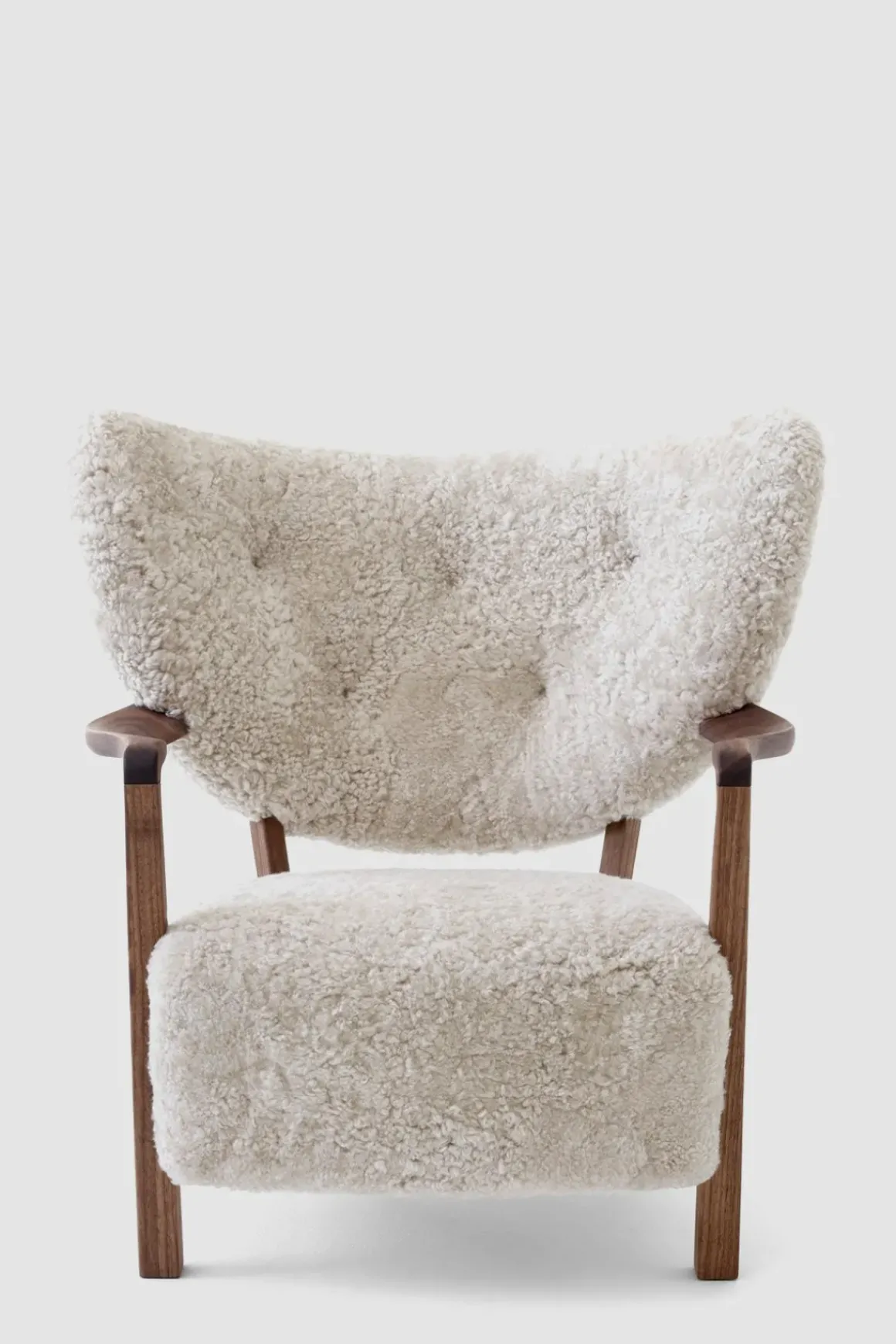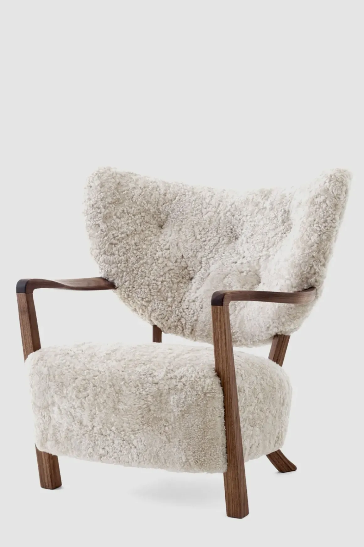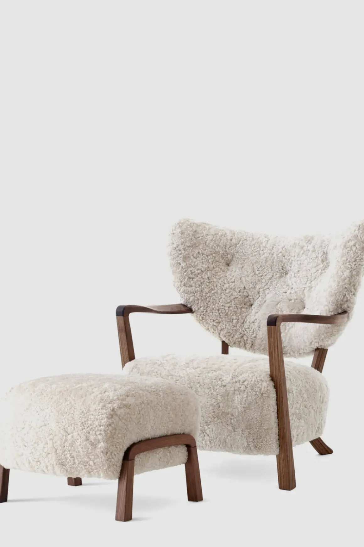 Finn roen med Wulff lenestol og puff fra u0026amp;Tradition. Wulff er en polstret loungestol som hyller de håndlagde designene fra 1930-tallet. Stolrammen er laget av massiv bøk og kryssfiner og deretter dekket med HR-skum og polyestervatt. Bena i heltre valnøtt er dreid, CNC-frest og oljet. Stolen har et luksuriøst, mykt trekk av saueskinn som dekker setet og ryggstøtten. Wulff står for overlegent håndverk og enestående komfort. Loungestolens arkitektoniske form vil gi et stilig uttrykk til ethvert interiør og vil være et velkomment møbel i stua eller på soverommet. Den tilhørende puffen er håndlaget med ben av solid valnøtt og kommer i samme møbeltrekk som loungestolen. Bruk den enten som fotskammel til Wulff-stolen eller som en sjarmerende loungekrakk alene.