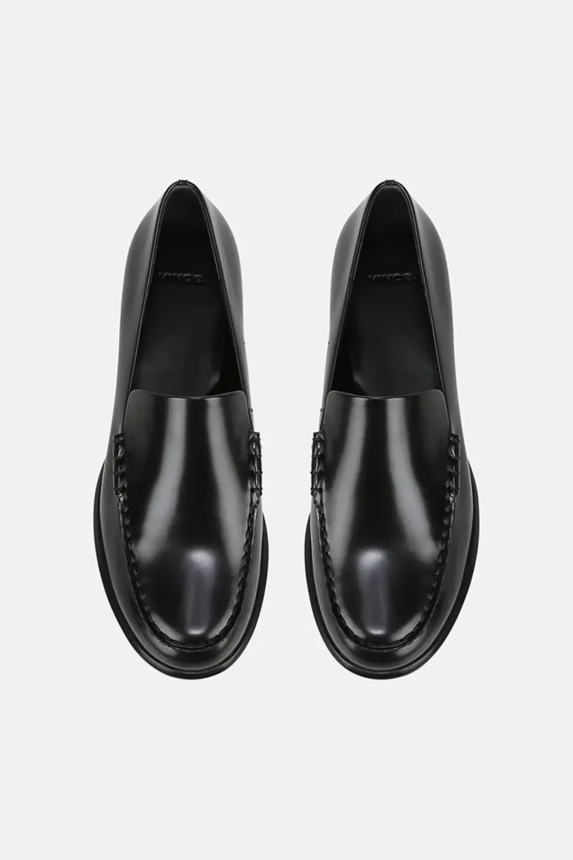 Namoi loafers fra Vince er laget av glatt spazzolato-lær, og har rene, brettede kanter og vakre minimalistiske detaljer som gir et moderne uttrykk. Det klassiske designet gjør dem perfekte for både hverdagsbruk og mer formelle anledninger. Kombiner dem med både bukser og skjørt for å tilføre antrekket et sofistikert preg uten å gå på kompromiss med komforten. Namoi loafersene er et must-have for enhver garderobe!