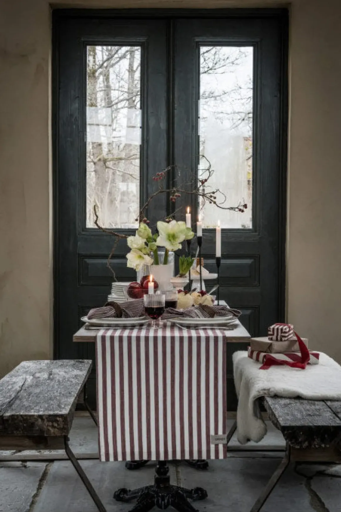 Løper fra Ernst i 100% bomull skaper en tidløs og koselig stemning på bordet. Det klassiske stripemønsteret passer perfekt til sesongens dekorasjoner og skaper en koselig atmosfære rundt måltidet. En vakker detalj som gjør julefeiringen ekstra spesiell.