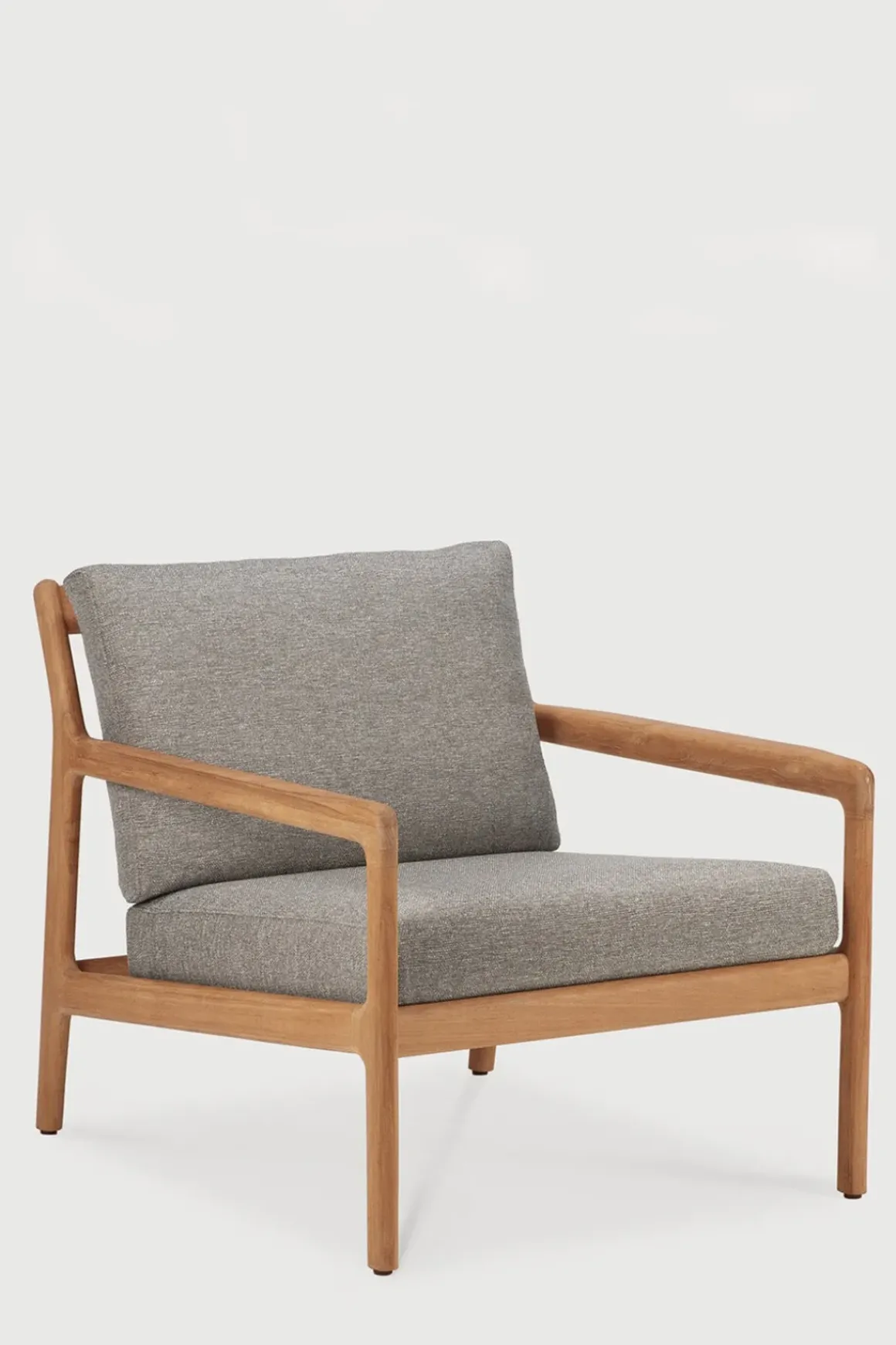 Jack-utestol i teak fra Ethnicraft. Lounge-stolen er enkel med moderne detaljer og solid konstruksjon. Det avslappede og myke uttrykket inviterer deg til komplett avslapning, og sittekomforten sørger for at man aldri vil reise seg opp igjen. De behagelige putene har fyll av hurtigtørkende skum og er trukket med stoff av ypperste kvalitet, vevd i Belgia. Perfekt til ditt uterom hjemme eller på hytta. Kombiner med andre møbler fra Jack-serien for en komplett look.