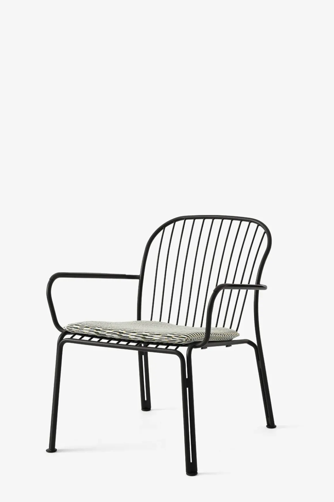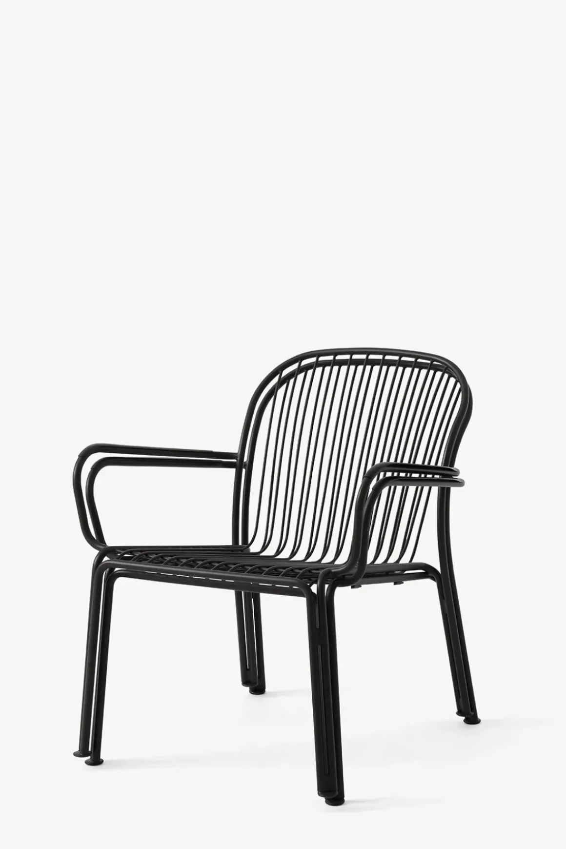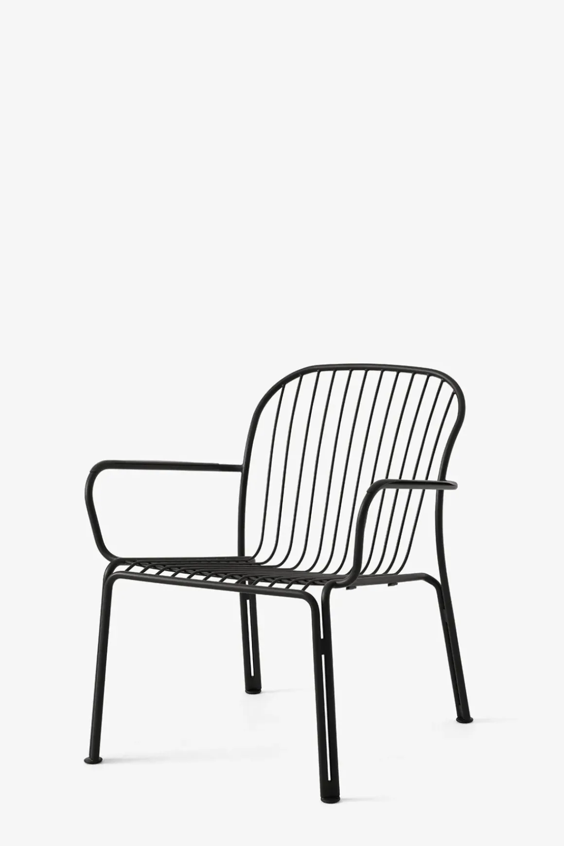 Thorvald loungestol med armlener fra danske u0026amp;Tradition, designet av anerkjente Space Copenhagen. Thorvald er laget av pulverlakkert stål og kommer i sort, grønn og elfenbenshvit. Stolens ramme og spilene er bøyd og delene blir deretter sveiset, polert, galvanisert og deretter pulverlakkert. Thorvald kan kombineres med andre typer utemøbler eller du kan komplettere med bord i samme serie for en komplett look til uteplassen. Stolene kan også enkelt stables som gjør de svært praktiske og plassbesparende når de ikke er i bruk.