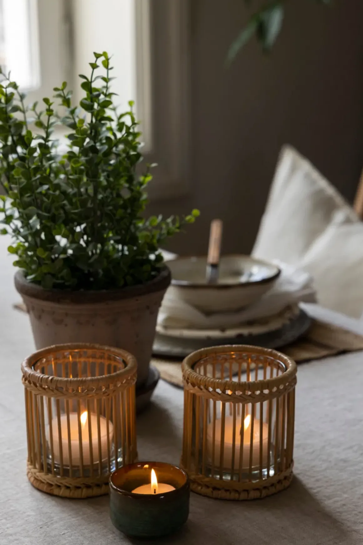 Gi et organisk preg til bordet, med denne lykten i natur fra Bruka Design. Spesielt fin til uteplassen på sene sommerkvelder.