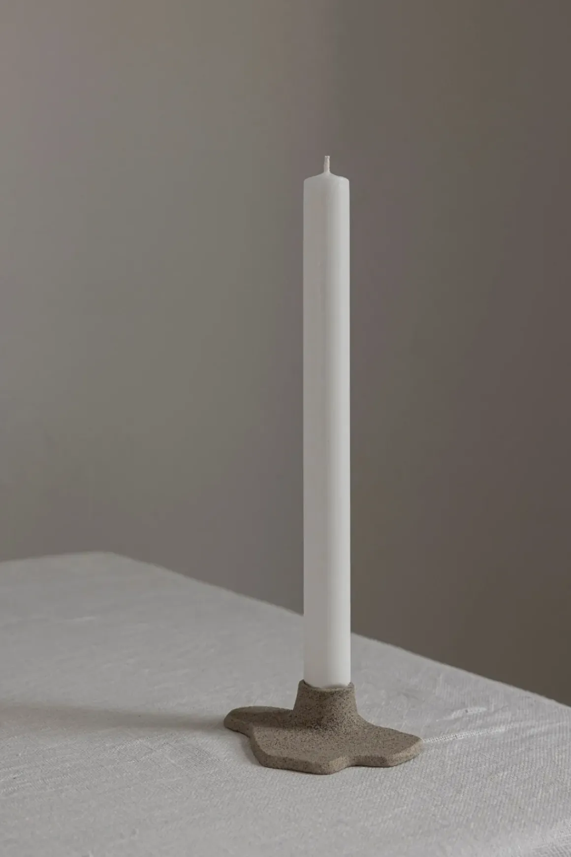 Bli lysestake i grått fra den norske keramikeren Helene Jørgensen. Lysestaken er skjært for hånd og er laget på bakgrunn av tanken om at energi som er brukt ikke skal være spilt, og er en resirkulert utgave av lysestaken «Flyt». Hver og én har en organisk form og har derfor sitt eget utrykk og størrelse.