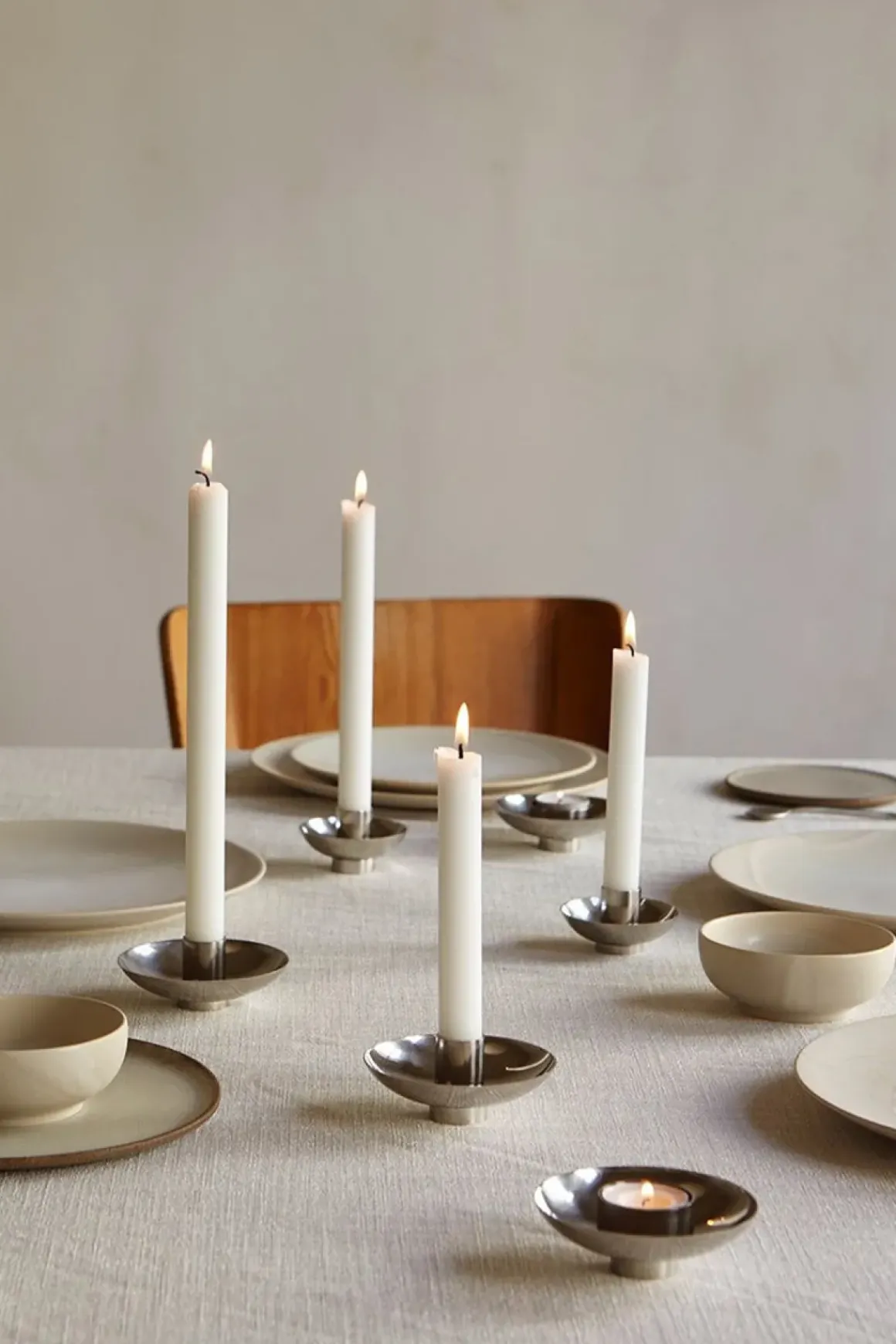 Esseis Rotate lysestaker i polert rustfritt stål er et minimalistisk og tidløst design som passer til enhver interiørstil. De rene linjene og den moderne finishen lar lyset fra stearinlysene være i fokus, samtidig som de skaper en varm og rolig atmosfære. Perfekte på spisebordet eller i andre rom der du ønsker en avslappet stemning. Lysestakene kommer som et sett med to ulike størrelser, en liten og en stor, som komplementerer hverandre fint. De kan enkelt demonteres for rengjøring, noe som gjør dem like praktiske som dekorative.