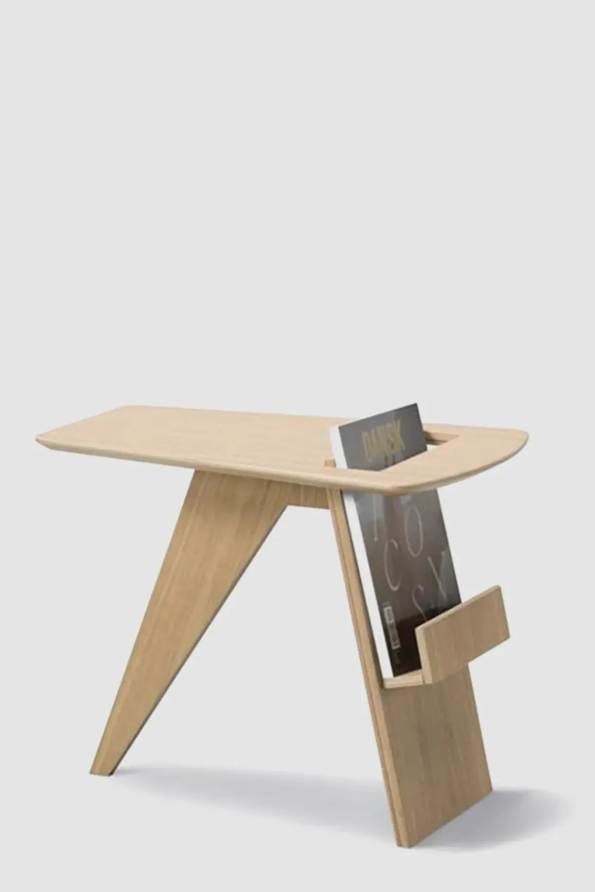 Magazine Table ble designet av danske Jens Risom i 1949. Bordet gjenspeiler Risom’s tanker rundt at kjernen til god design er komfort, varmen fra treverk sammen med en grasiøs stil. I lakkert eik, kombinasjon av myke linjer og nøye utformede utskjæringer, er dette et perfekt sidebord med plass til lesestoff og en kaffekopp. En virkelig designklassiker! Bordet passer fantastisk fint ved siden av Calmo Sofa eller Swoon stolene fra samme merke.