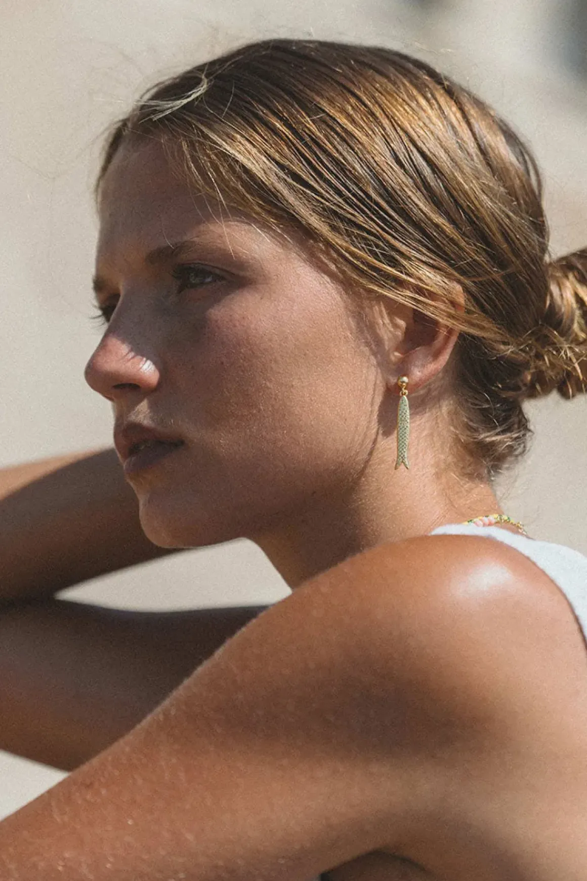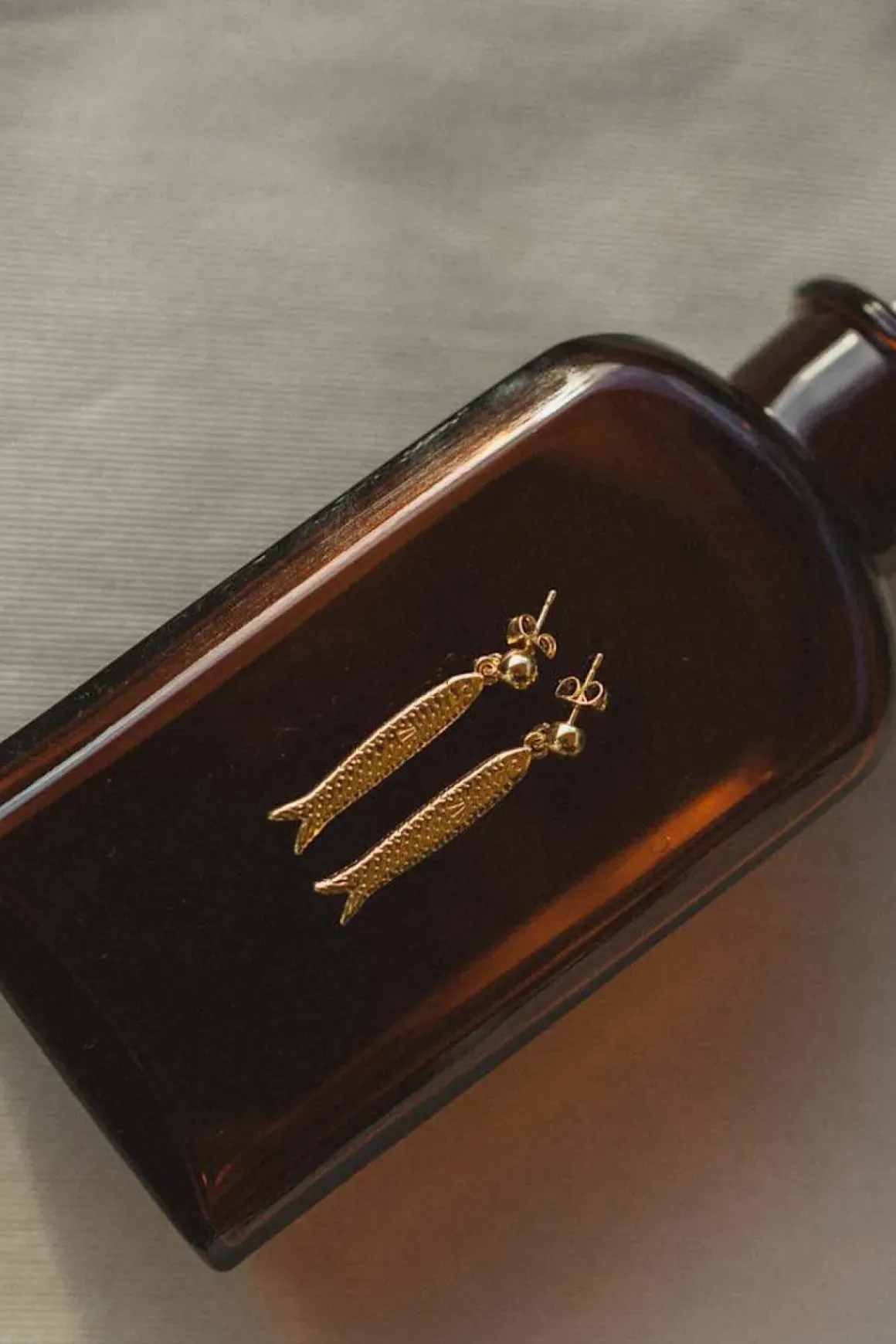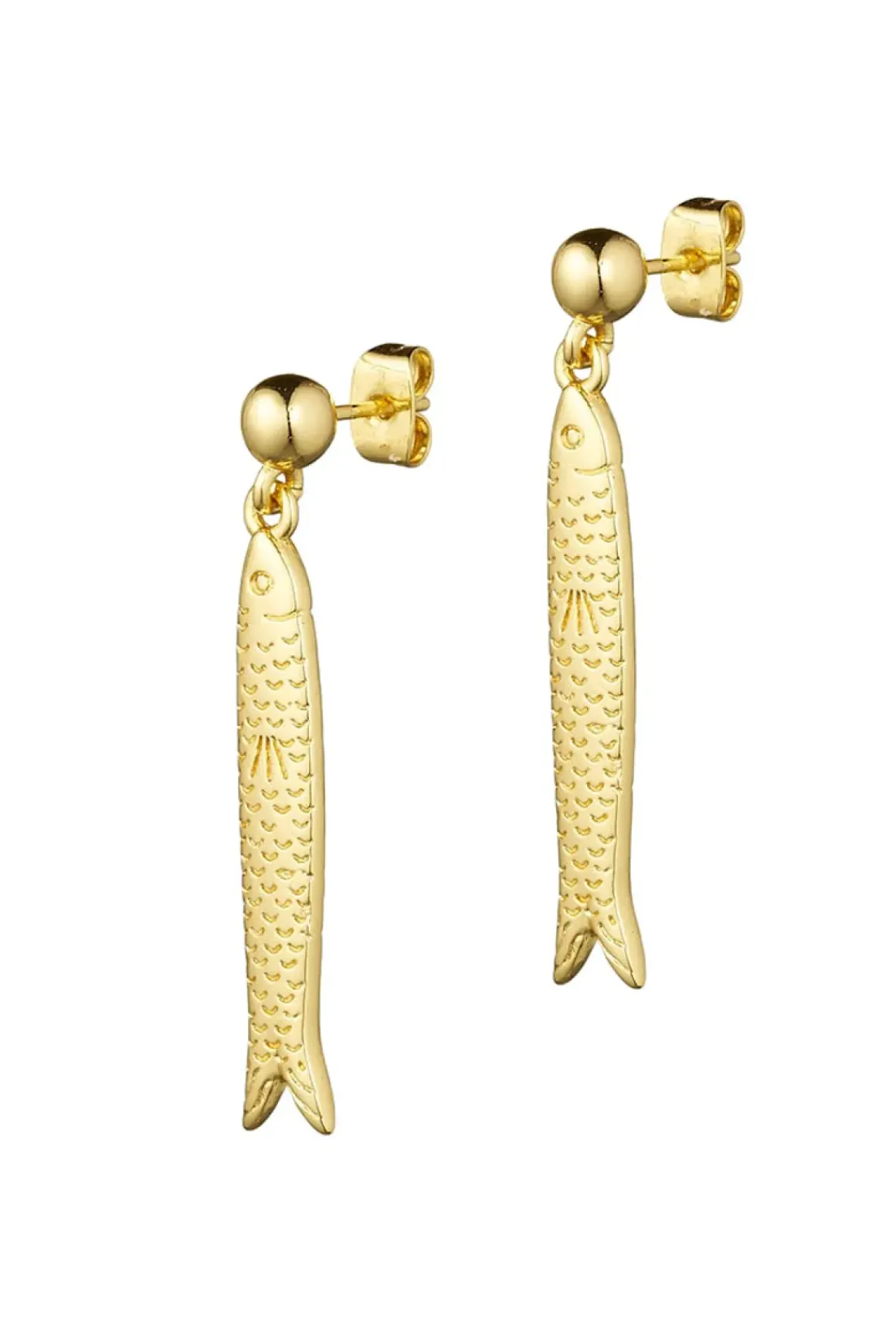 Hippie Fish fra Anni Lu og Il Mare-kolleksjonen er et lekent par øredobber som henter inspirasjon fra havets verden. De gullfargede fiskedetaljene skaper et unikt blikkfang og gir et hint av sommerlige stranddager. Perfekte for å tilføre et personlig og kreativt preg til antrekket ditt.