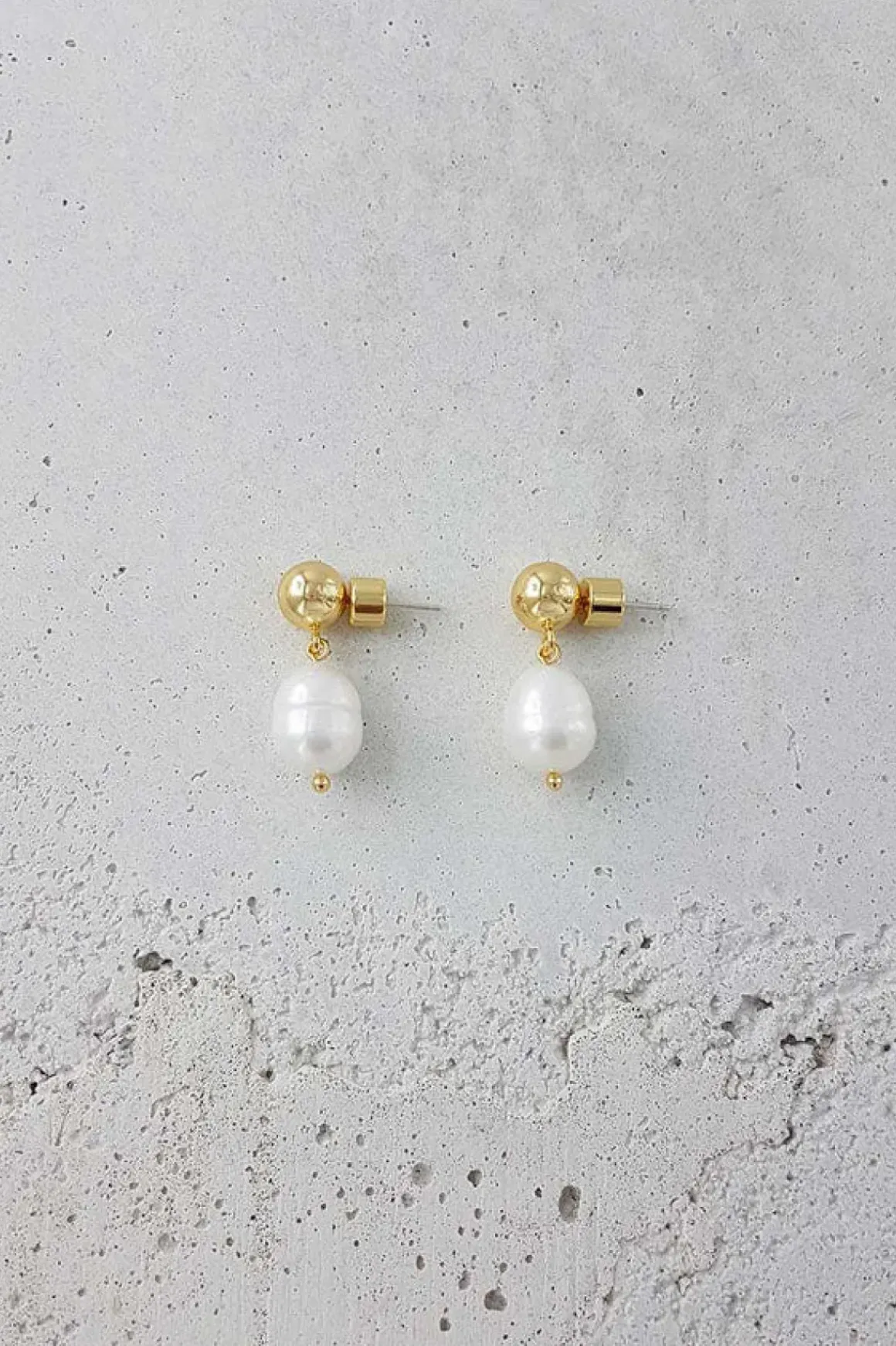 Øredobber i gullbelagt sterlingsølv med perleanheng fra Romanin. Romanin ble grunnlagt i 2018 av designer Elizabeth Romanin. Designeren henter inspirasjon fra sin italienske/australske arv smeltet sammen med skandinavisk stil. Smykkene er klassiske, med moderne elementer som gir alle delene av kolleksjonen et unikt preg.