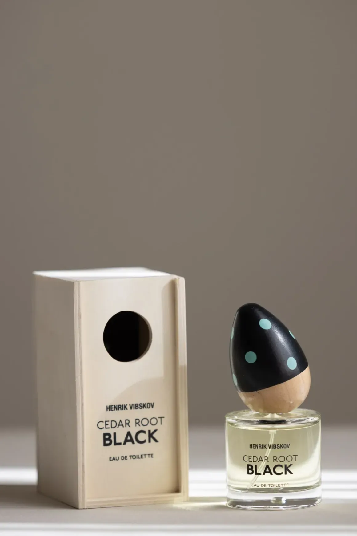 Cedar Root Black fra Henrik Vibskov er en frisk og livlig duftopplevelse med tydelige referanser til furuskog og sitrus, hentet fra et fantasifullt landskap i Vibskovs univers. Duften åpner med energiske toner av sitrus og støvete furu, før den utvikler seg til et karakterfullt samspill av gin, mandel og lær, med overraskende innslag av jasmin, sort pepper og blekk. Flasken er toppet med håndskåret og malt treverk, som knytter Henrik Vibskovs håndverksmessige formspråk til denne særegne parfymen.