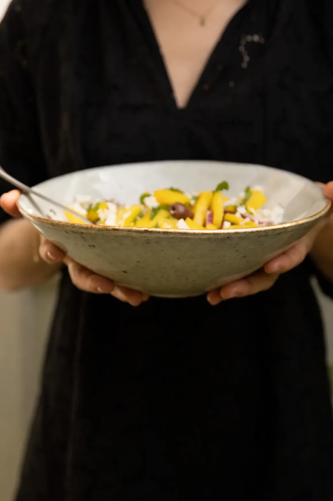 Skål i glasert steingods fra Tell Me More. Skålen er sterk, holdbar og den fine glasuren gir hver og en et unikt utseende som vil friske opp borddekningen din. Veldig fin alene, eller bland med annet servise i forskjellige teksturer og farger for et spennende og innbydende utseende. Siden hver skål er unik kan fargen og utseende variere litt fra bildet. Kan vaskes i maskin.