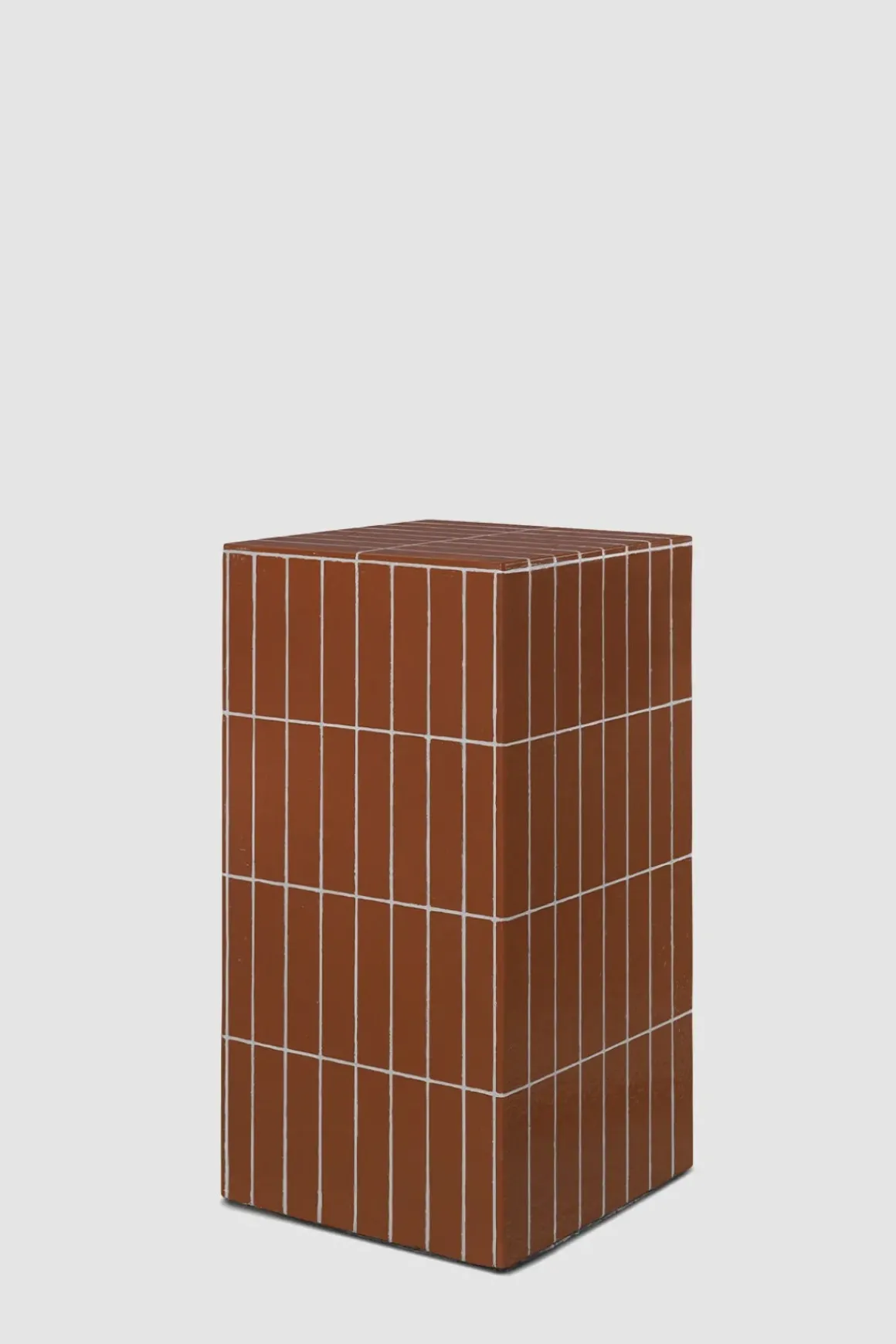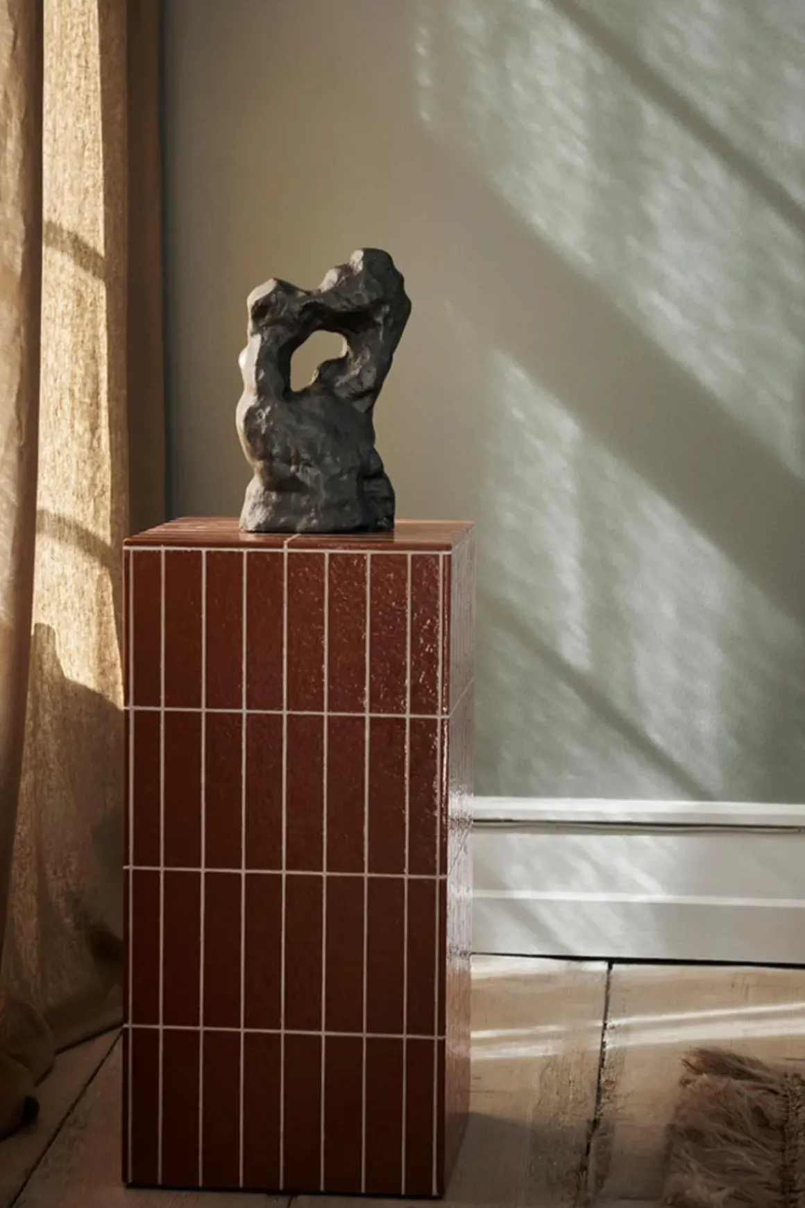 Pillar pidestall fra Ferm Living er laget av glassfiberarmert betong med riller gravert inn i overflaten som tilfører taktilitet og gir den et vakkert mønster som minner om fliser. Den robuste pidestallen tjener flere formål, enten som et