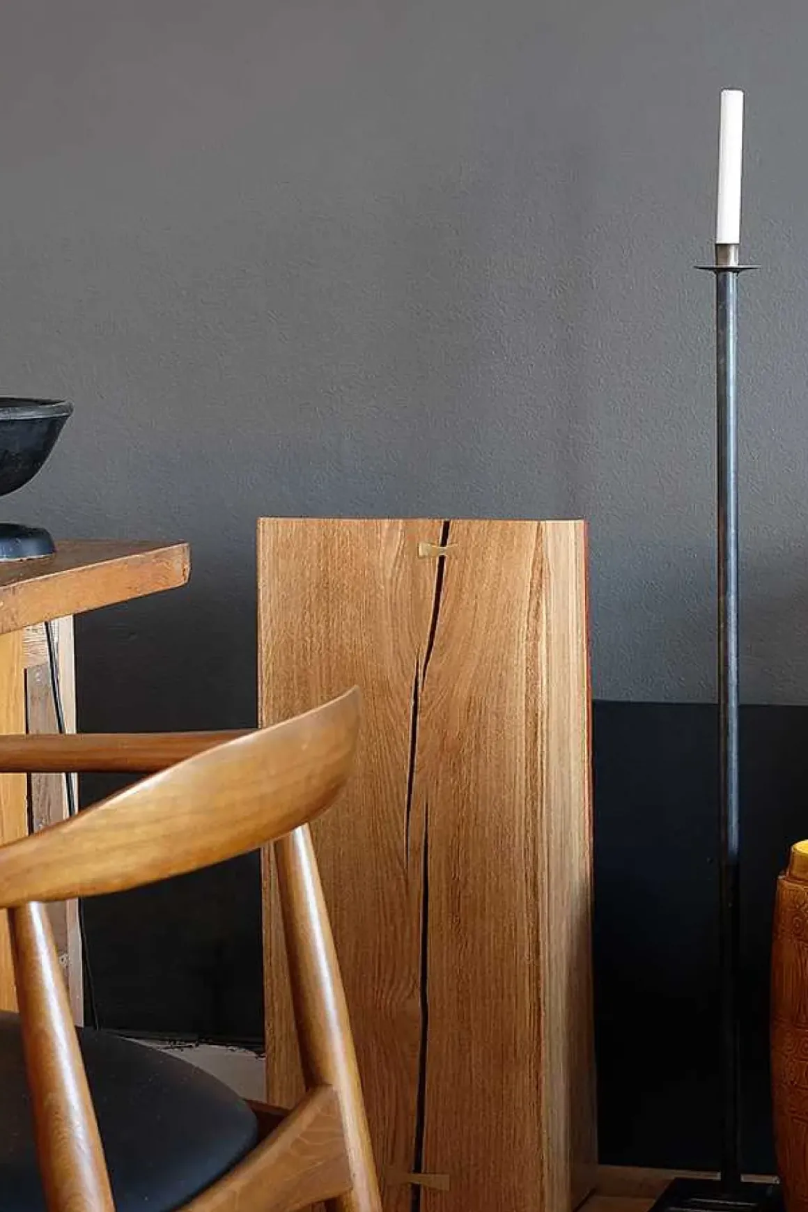 Unik pidestall i eik fra svenske Dry Studios. Alle produktene er håndlaget i eik med messingdetaljer som holder de naturlige sprekkene i treverket samlet. En helt rå pidestall som kan brukes som et avlastningsbord, nattbord eller til utstilling av en favorittvase eller skulptur. Vi elsker de naturlige variasjonene i treverket som tilfører varme og den rustikke følelsen til interiøret. Solid Square Log kommer både i en høy versjon, lav versjon og i mini variant.
