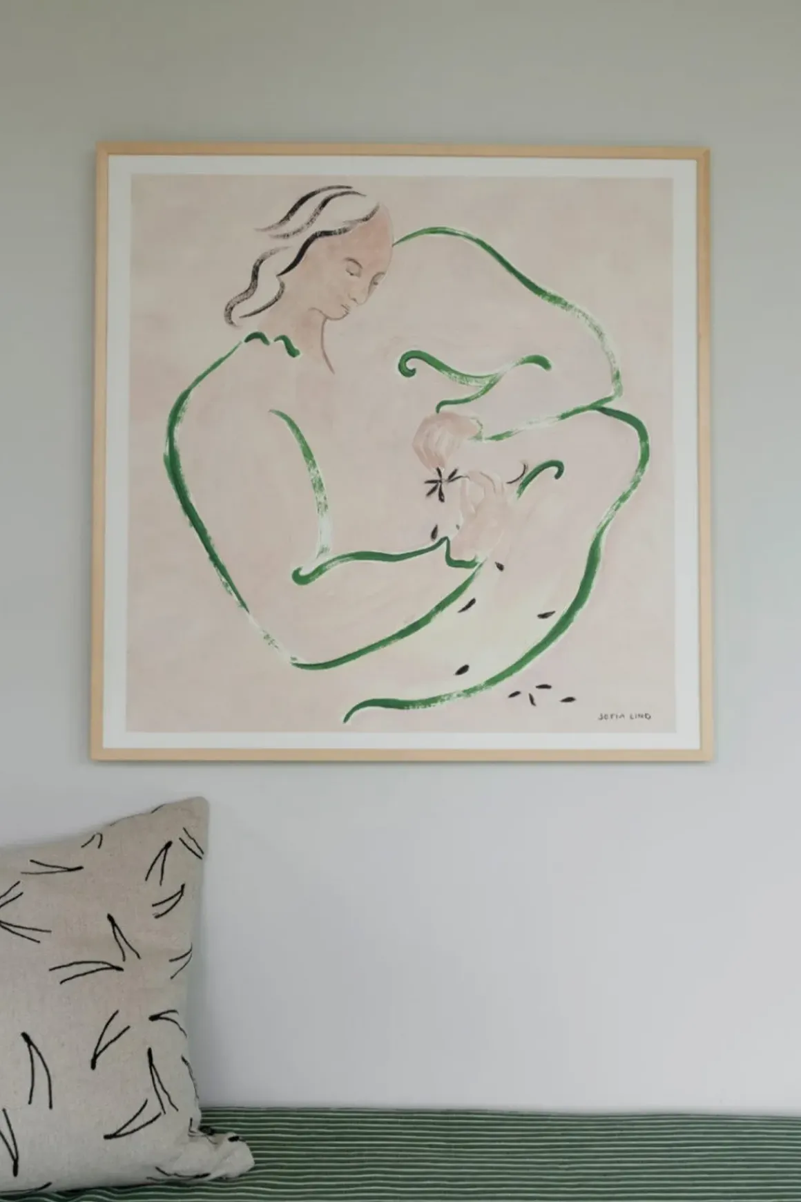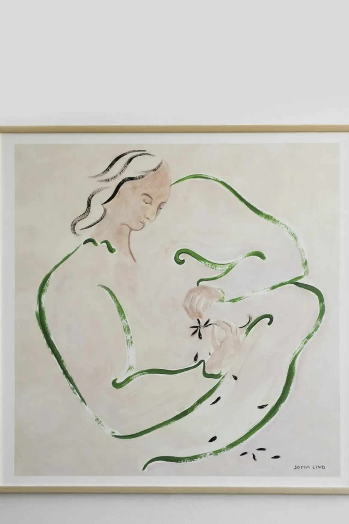 Love Me Not plakat med trykk fra den svenske kunstneren Sofia Lind for Fine Little Day. Hun er kjent for sin bruk av forskjellige mønstre og lar børstestrøk og de originale materialene være synlig i trykket.