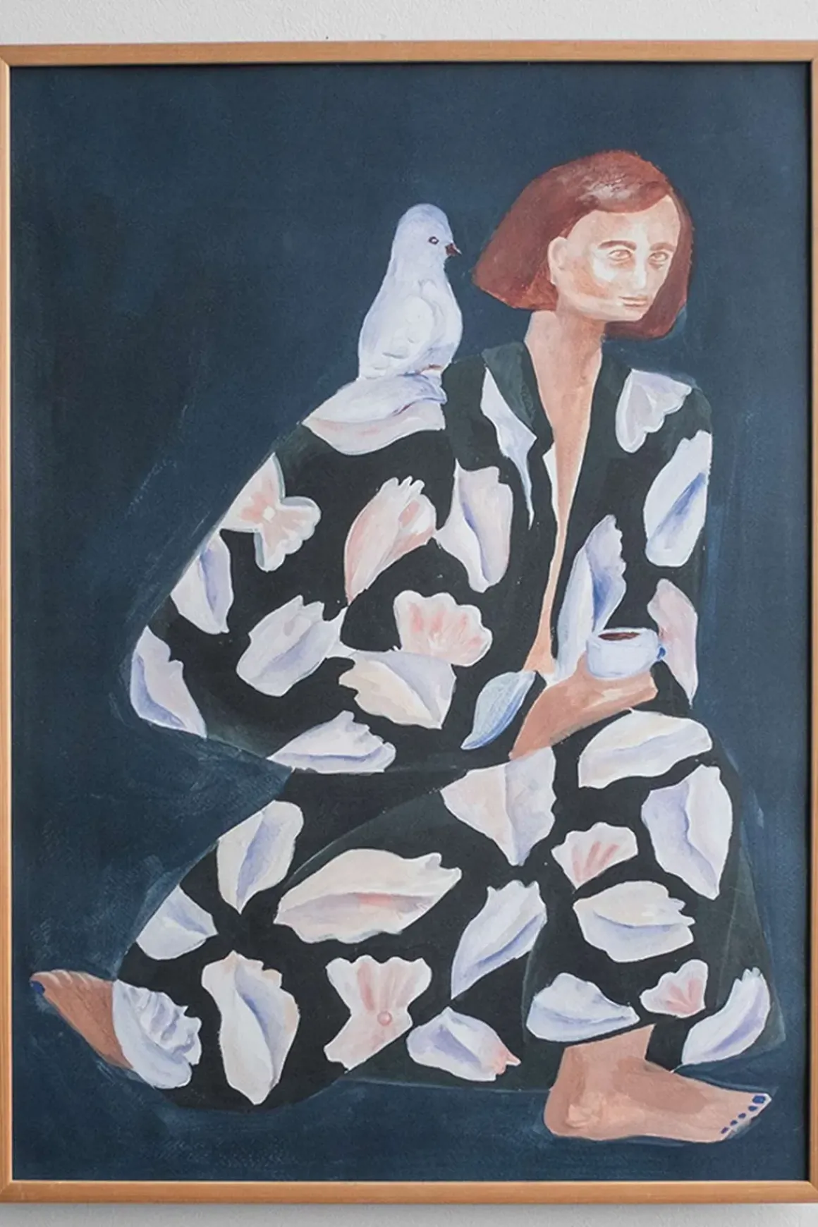 Plakat med trykk fra den svenske kunstneren Sofia Lind. Hun er kjent for sin bruk av forskjellige mønstre og lar børstestrøk og de originale materialene være synlig i trykket.