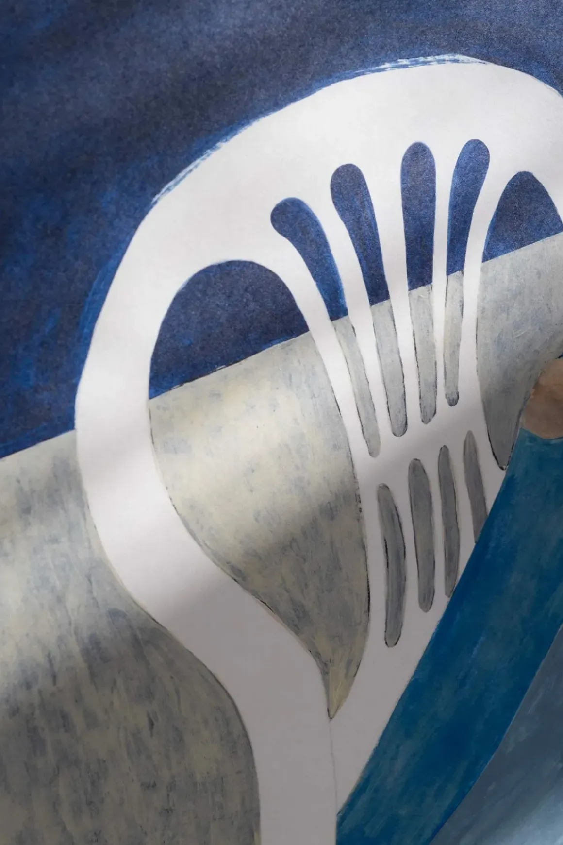 Summer Evening plakat med trykk fra den svenske kunstneren Sofia Lind. Hun er kjent for sin bruk av forskjellige mønstre og lar børstestrøk og de originale materialene være synlig i trykket.