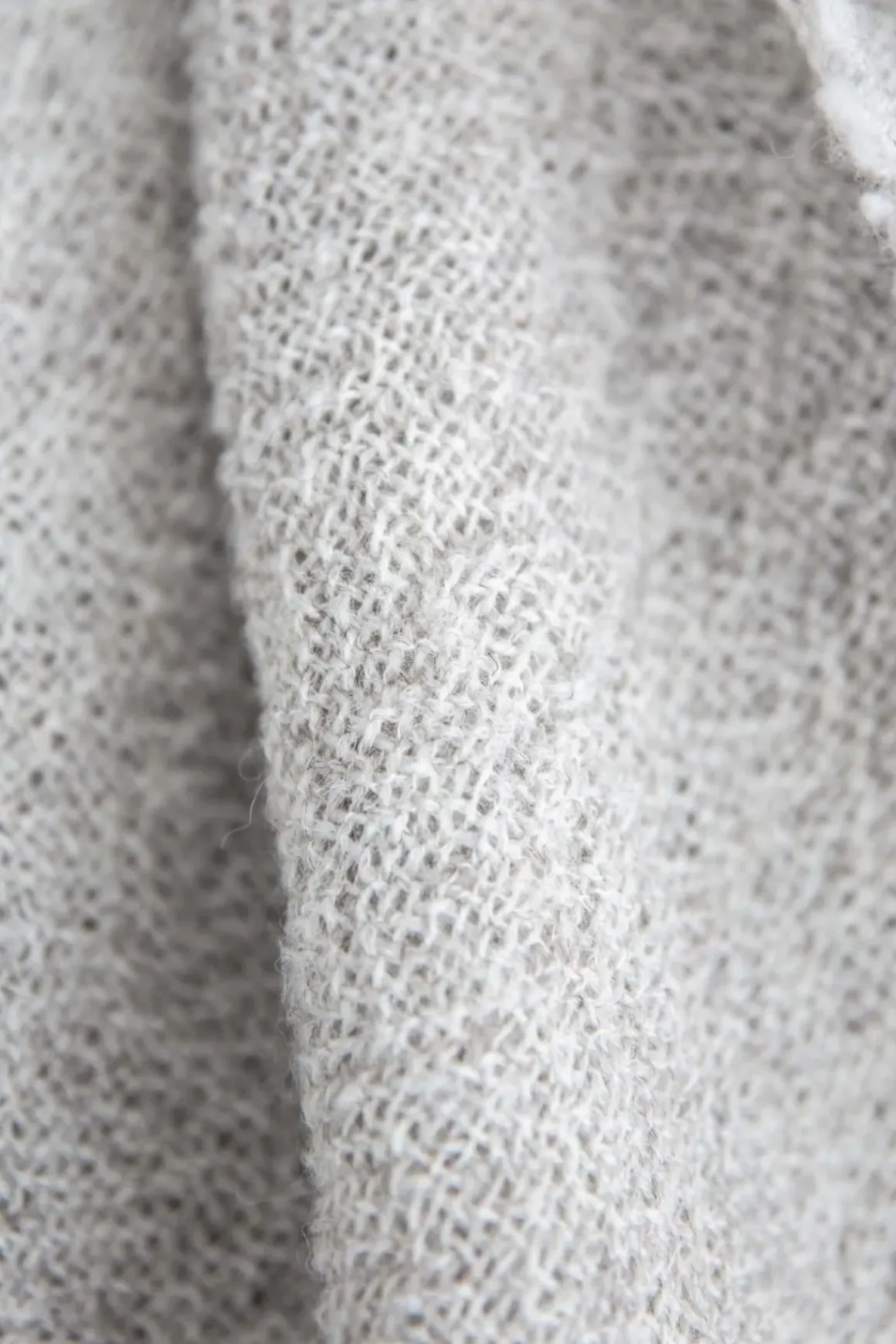 Little er et lett ullpledd fra italienske Society, kjent for sin innovative tilnærming til tekstilproduksjon. Pleddet har frynser på kantene og kommer i den nøytrale fargen Ghiaccio, som passer perfekt både i stuen og på soverommet. Den unike strukturen gir en luftig, men samtidig myk følelse, ideell for å tilføre litt ekstra luksus og varme til sengen eller sofaen på kjølige kvelder. Som alle produkter fra Society, er Little pleddet plaggfarget, en prosess som utføres på den over 100 år gamle Limonta-fabrikken i Italia. Her blir stoffene først sydd og deretter farget, noe som forbedrer tekstilens kvalitet og gir hvert produkt en unik fargevariasjon som er karakteristisk for Society.