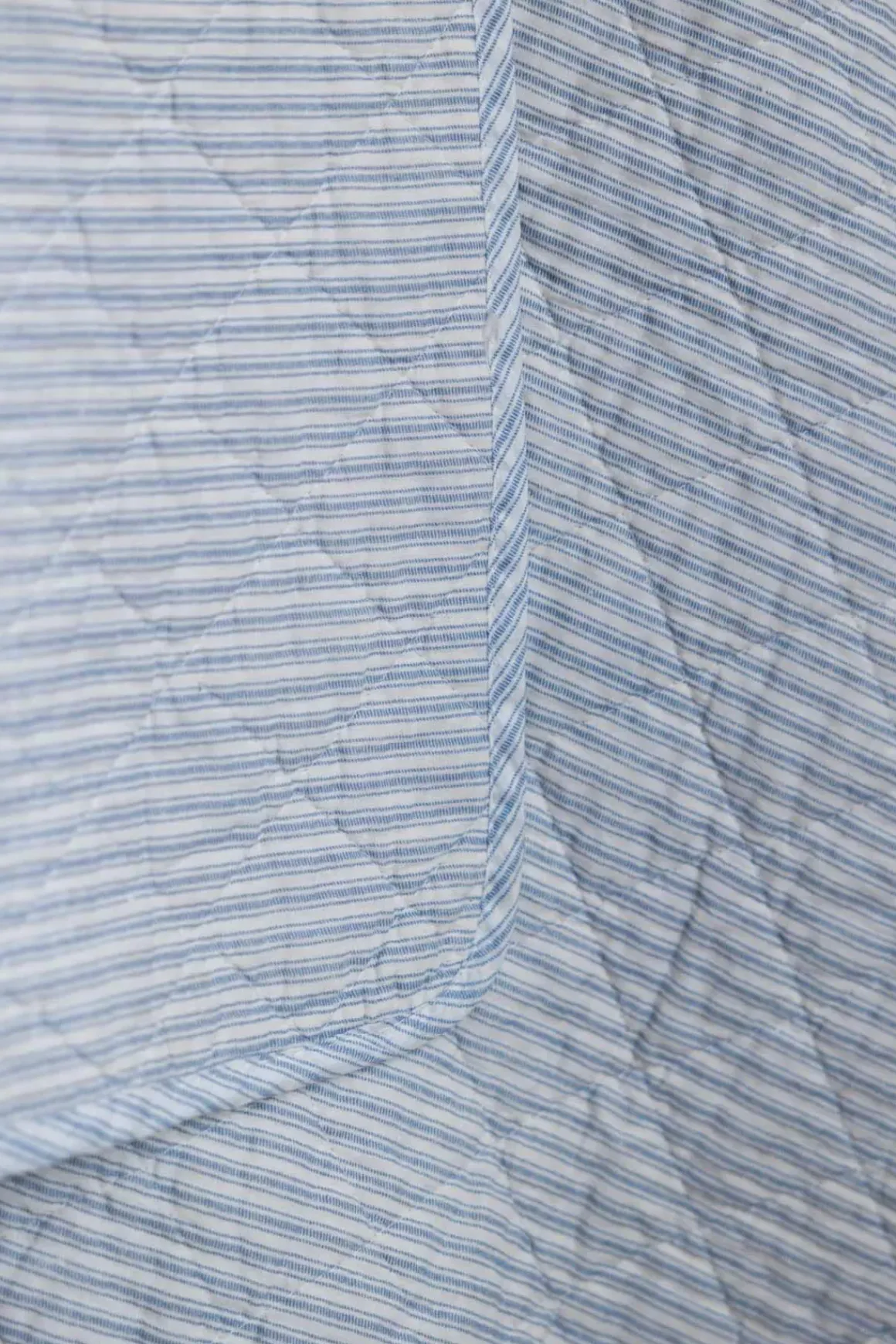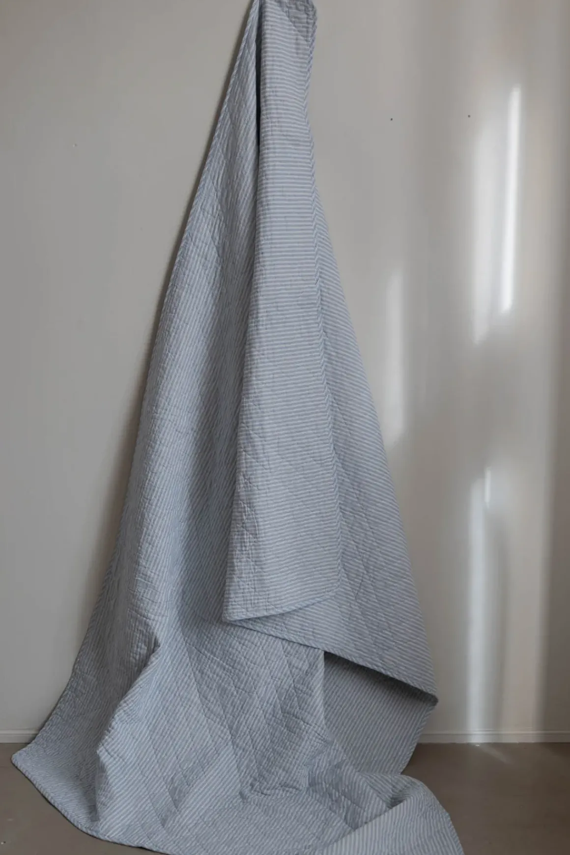 Mykt, quiltet pledd/sengeteppe fra Au Maison. Klassisk med tynne blå og hvite striper. Teppet er laget av resirkulert bomull og passer perfekt som pledd i stuen eller som sengeteppe. Bruk som piknik-pledd eller på uteplassen.