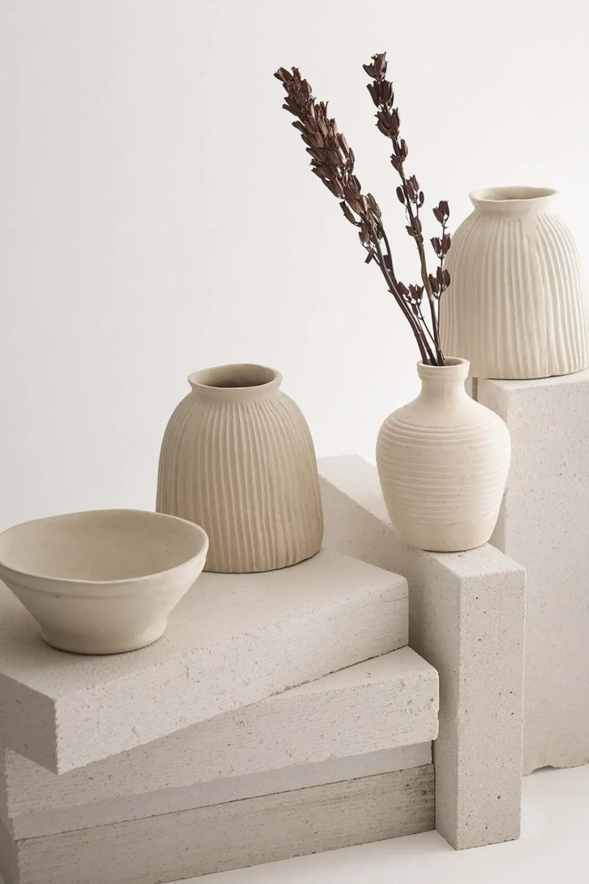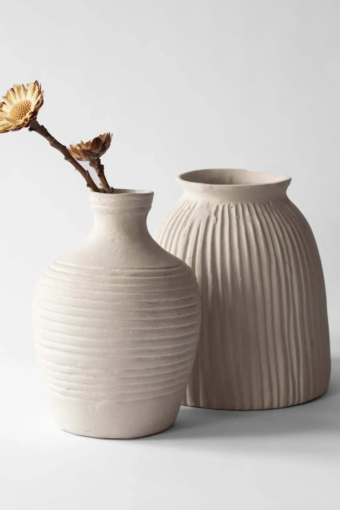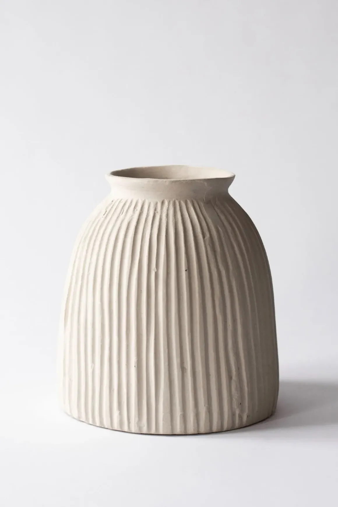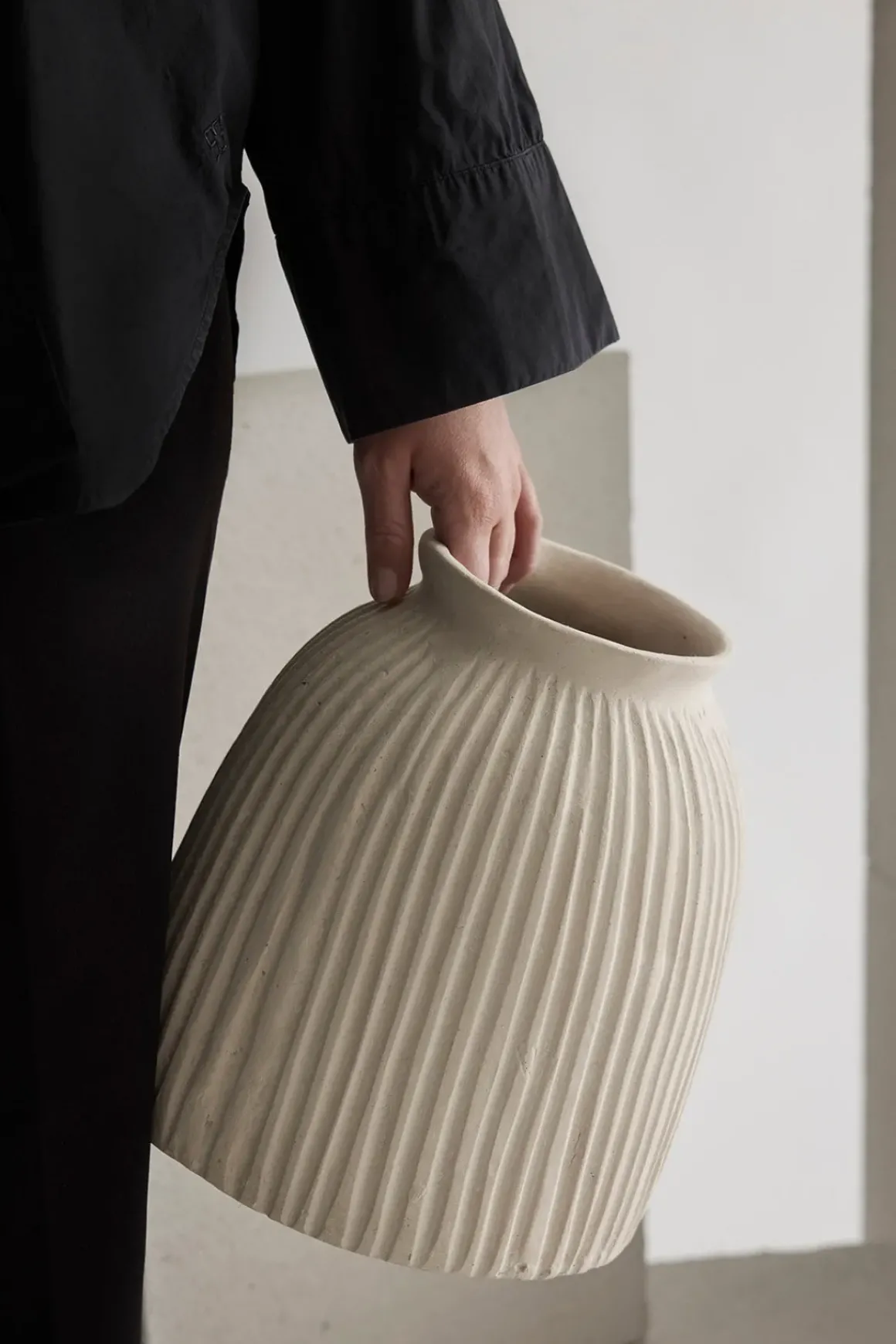 Dekorativ potte fra svenske Tell Me More laget i India. Potten er laget av pappmasje med et ribbet mønster, og den rustikke stilen gjør den perfekt som dekorasjon i stue eller kjøkken. Veneto er laget av overskuddsaviser fra lokale forhandlere i en indisk landsby, noe som sikrer at hver potte har en unik form og farge. Den tåler ikke vann, så unngå væskekontakt og fuktige omgivelser. Best brukt som dekorasjon. Den er flott både alene og sammen med andre produkter i Veneto-serien.