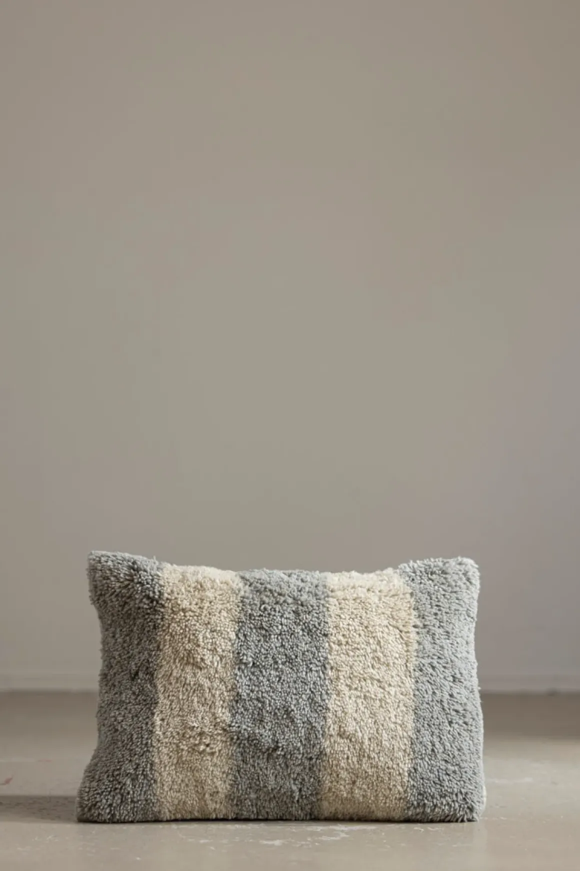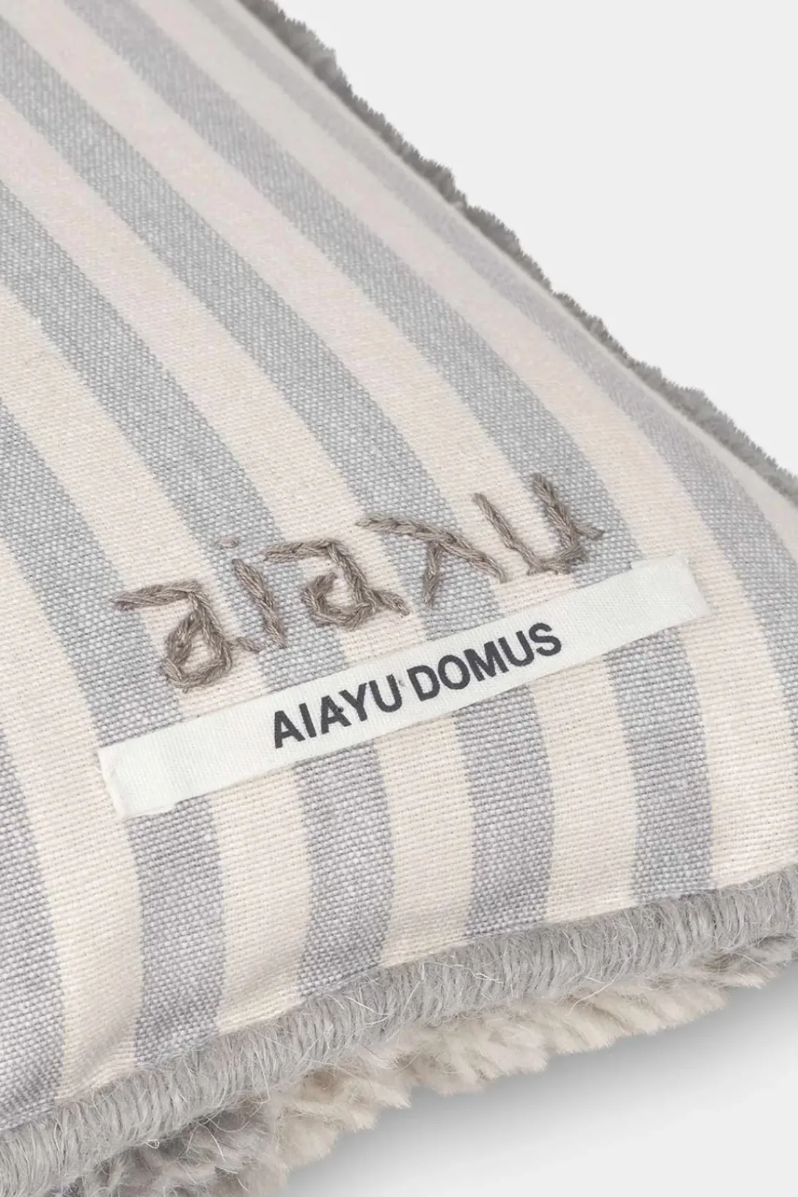 Nepal stripe puten fra Aiayu Domus er håndlaget i Kathmandu og har en organisk, raggete finish og et klassisk mønster. Hver pute er laget ved å binde håndfargede biter av tibetansk saueull inn i et stripet mønster, og deretter håndkutte ullen som et siste trinn for å få den fantastiske plysjoverflaten. Ullen er hentet direkte fra Tibet og bearbeidet lokalt på Aiayus verksted i Nepal. Baksiden er av økologisk bomull med en konvoluttlukking og håndbrodert Aiayu-logo. Puten er svært slitesterk og nupper ikke.