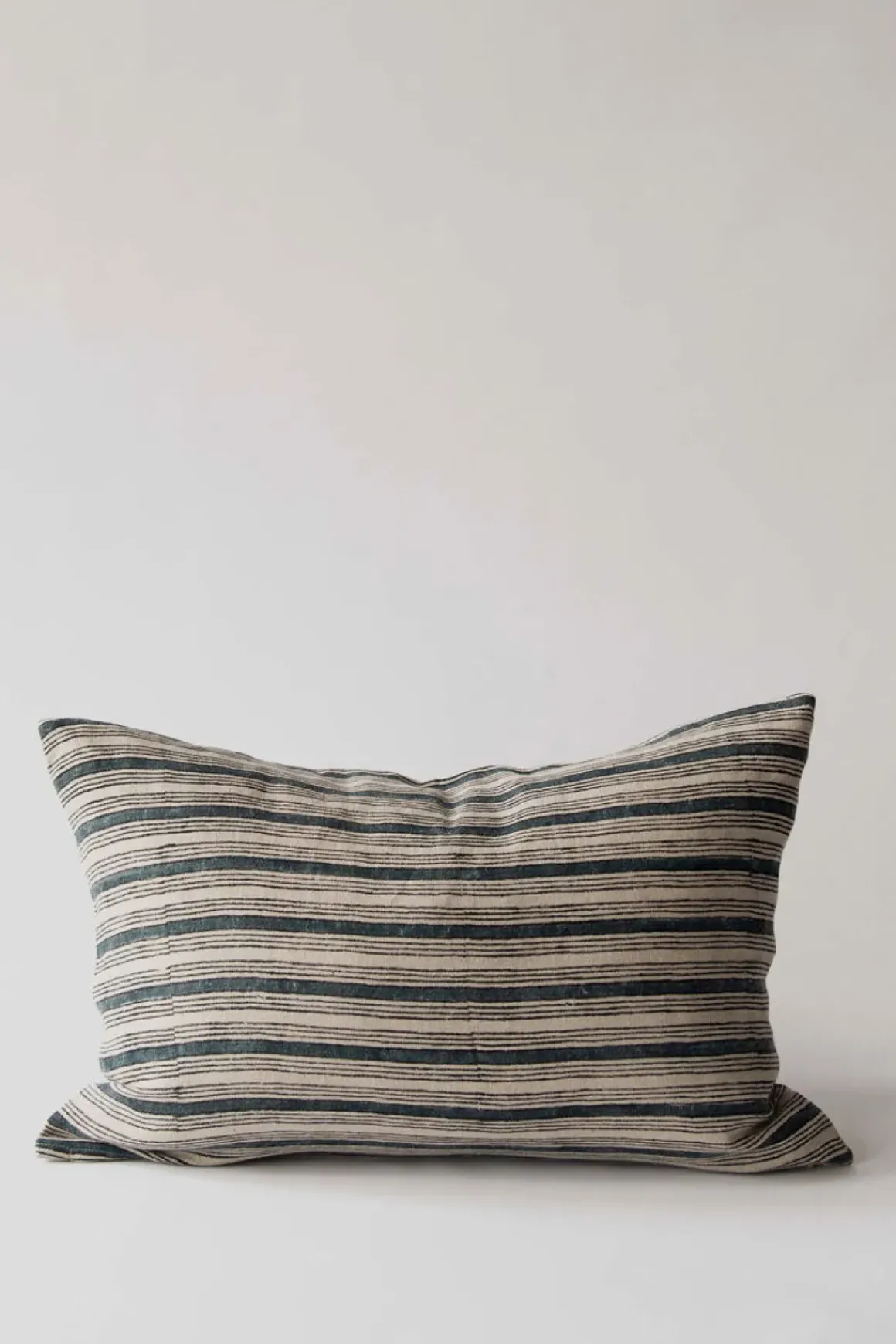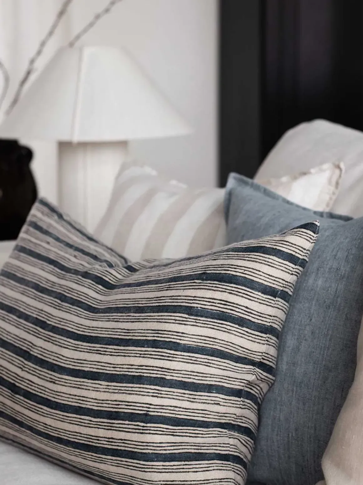 Dino Block Print Putetrekk fra Tell Me More. Laget av 100% europeisk lin, kommer dette putetrekket i to farger og har et mønster som er skapt av blokktrykk. en tradisjonell teknikk som har blitt brukt i mange år og utføres for hånd. Hvert putetrekk er unikt, laget med omhu og håndlaget, noe som betyr at tekstur, farge og trykk kan variere noe fra bildene.