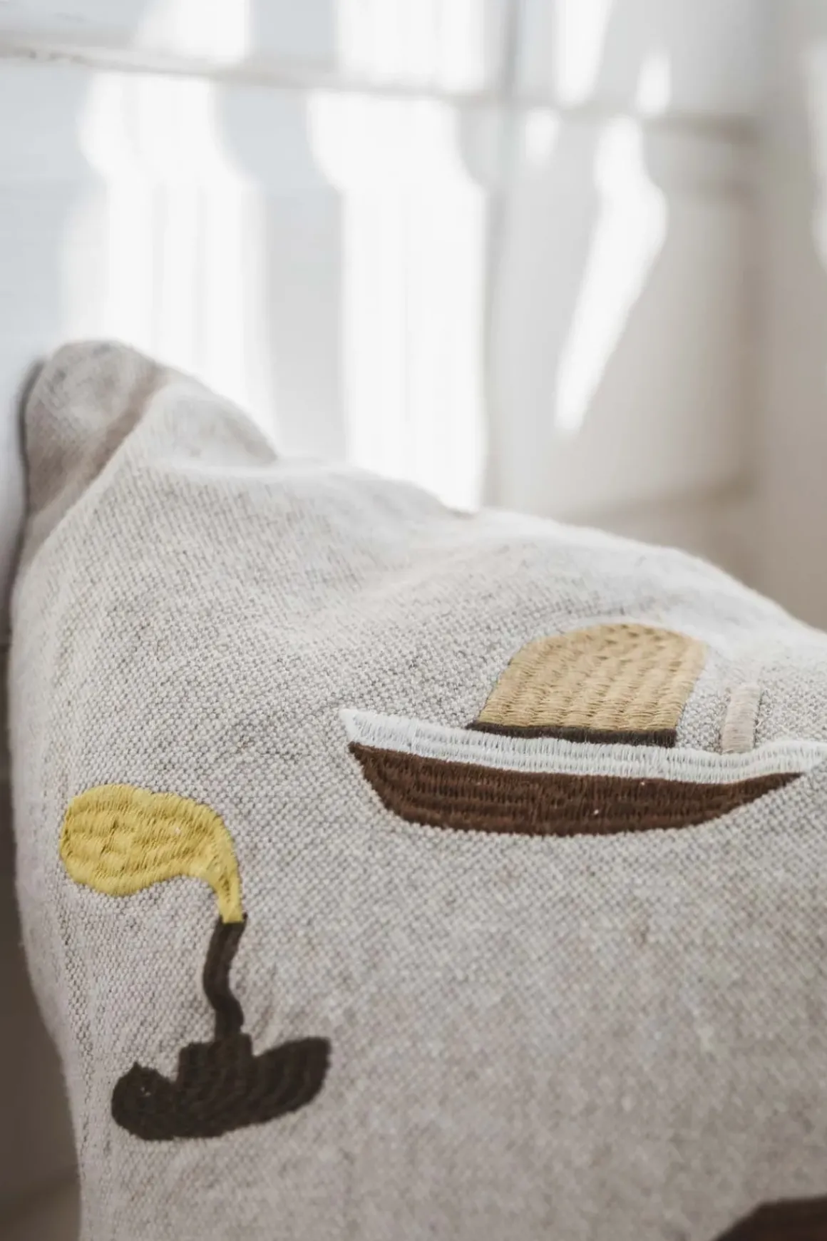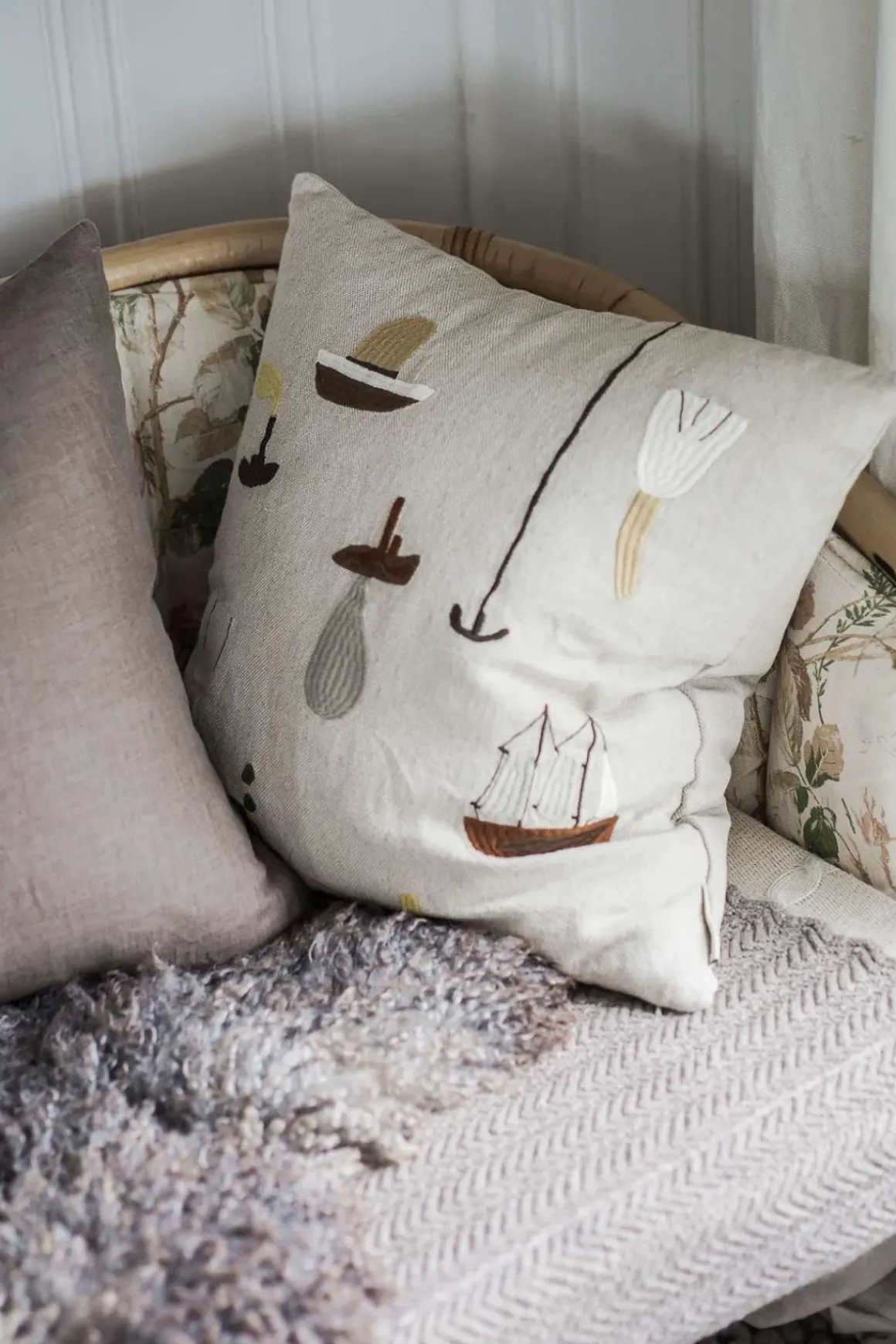 Putetrekk designet av Elisabeth Dunker, for Fine Little Day. Putetrekket er dekorert med fine broderte motiv, og har fått navnet “Sail With Me”. Kun motiv på ene siden, lukkes med glidelås i bunn. Perfekt som et personlig innslag til ditt interiør.