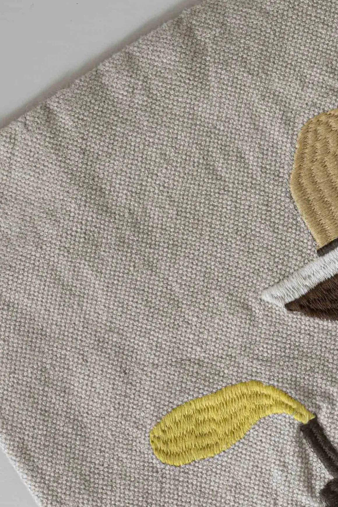 - Materiale: 70% lin, 30% ubleket bomull, broderi med polyestertråd