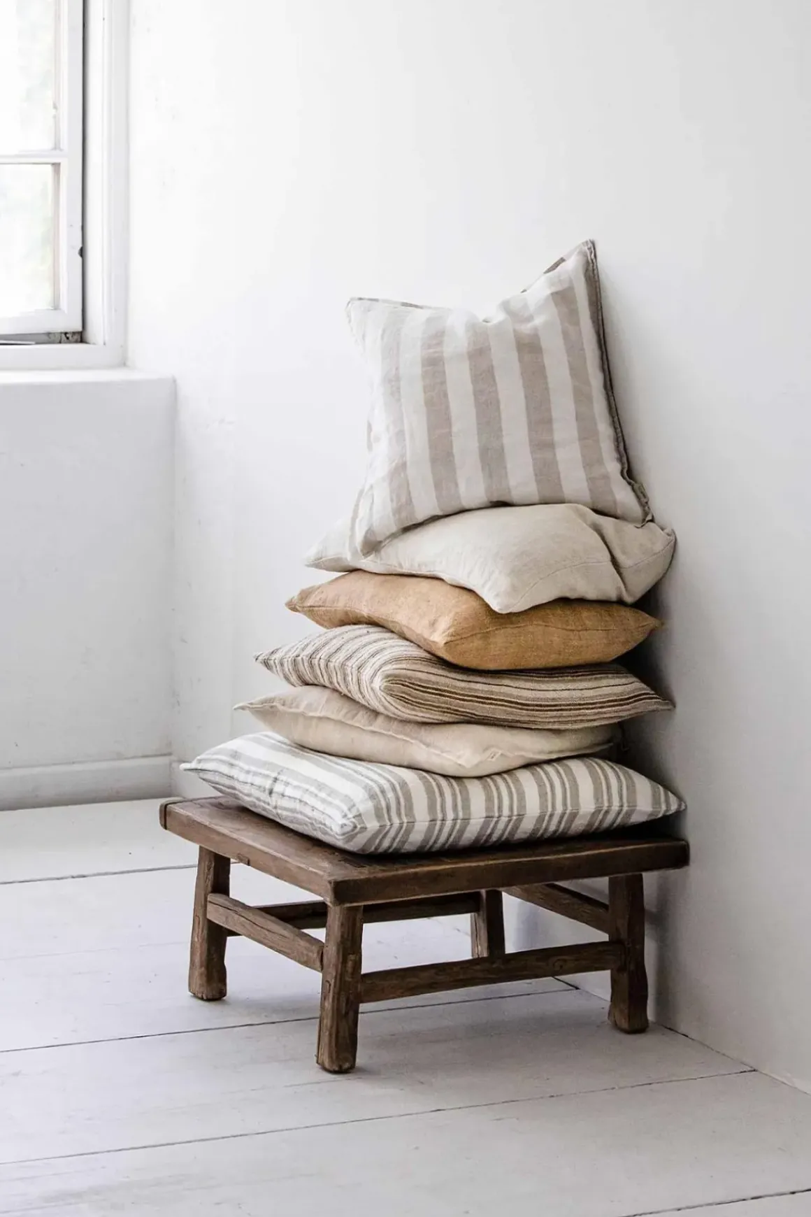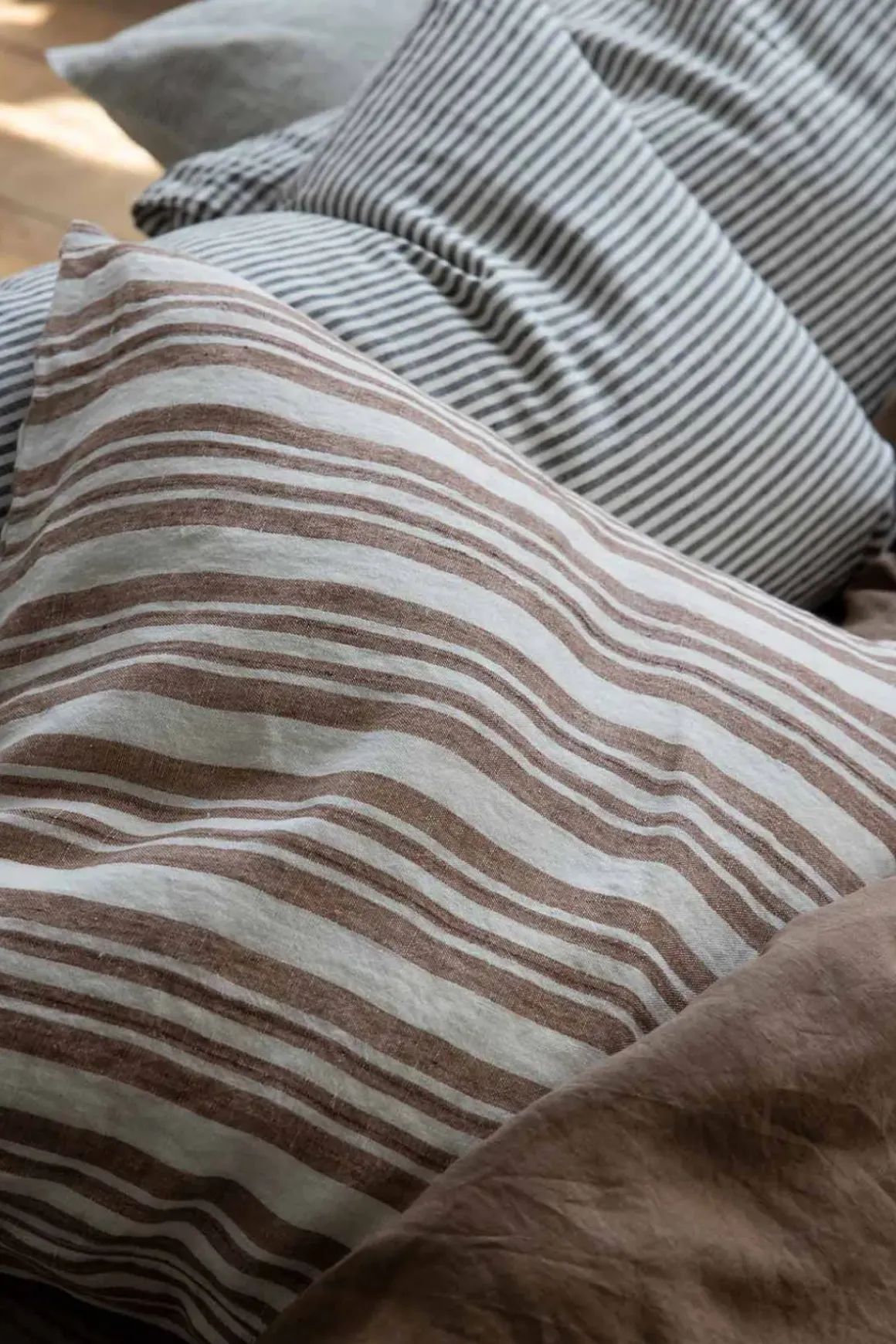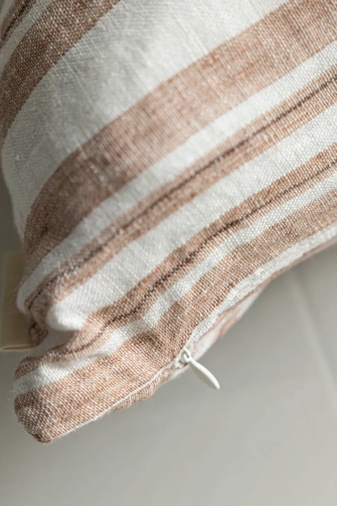 Siena stripet putetrekk fra svenske Tell Me More. Putetrekket er laget i India og har en grovere, håndvevd linkvalitet. Stoffet som brukes kan variere i grovhet og tekstur siden garnet er håndfarget og soltørket, noe som skaper vakre fargevariasjoner. Teksturen på puten kan variere og fargen og formen kan avvike fra bildet. Trekket lukkes i bunnen med skjult glidelås. Innerpute selges separat.