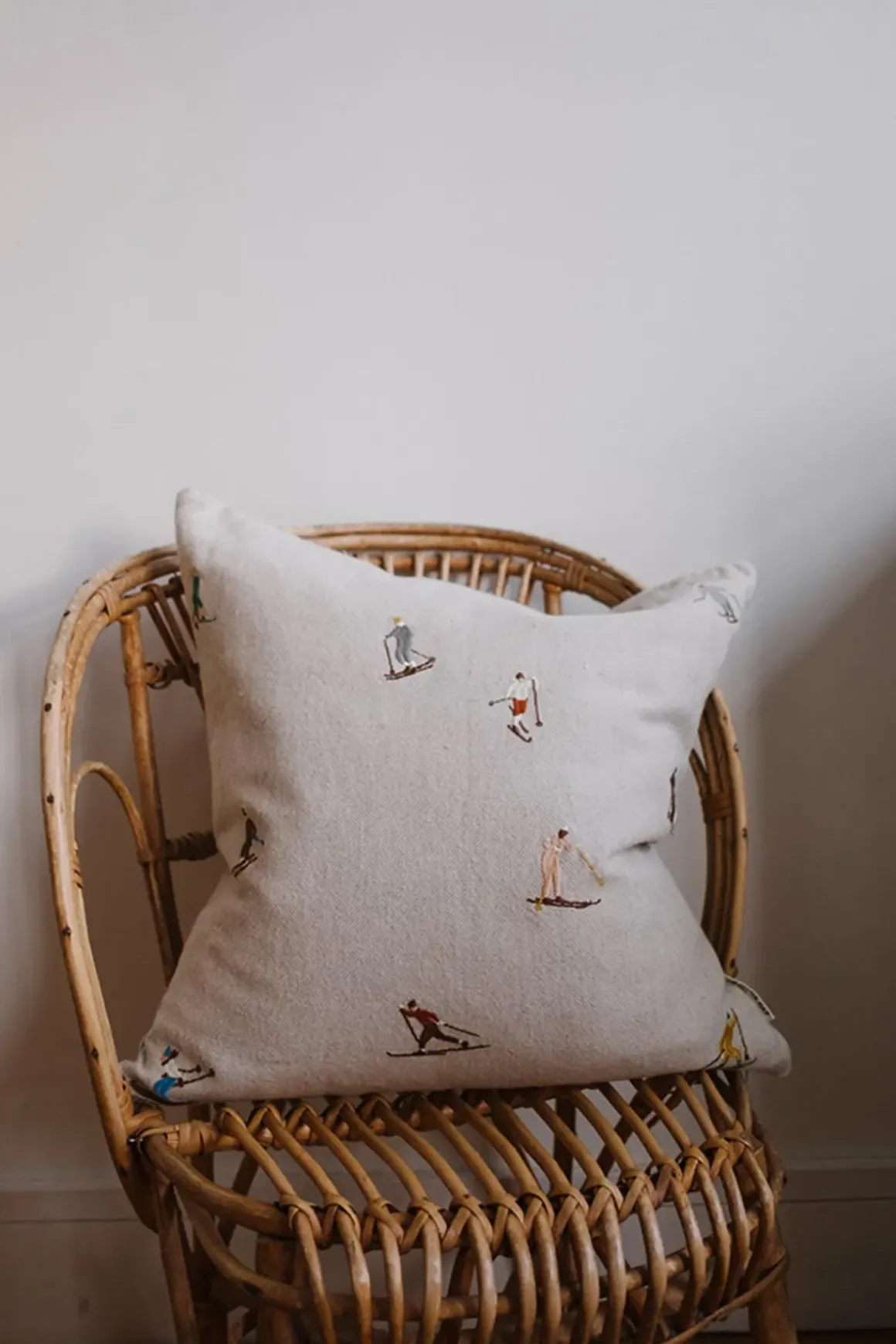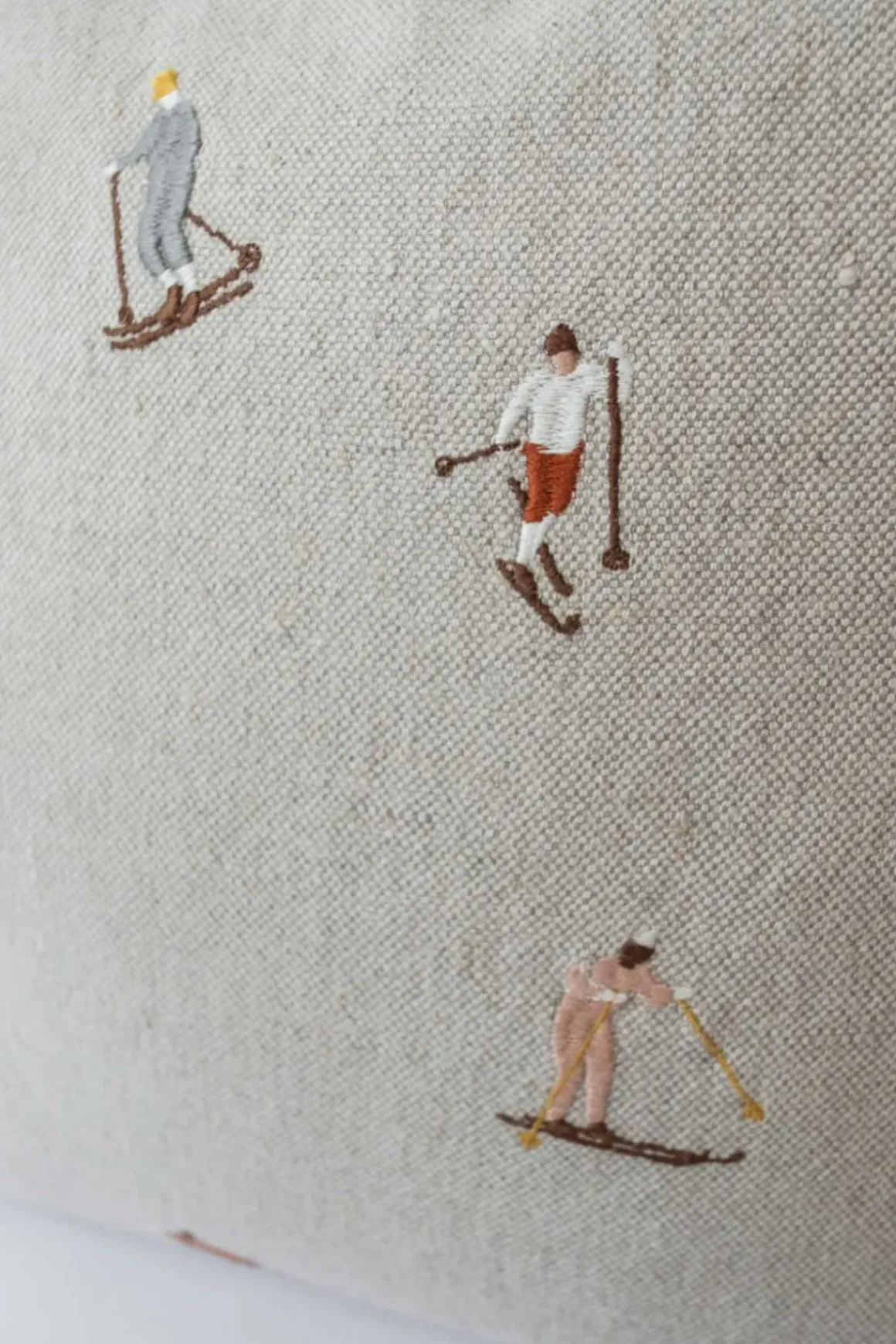 Putetrekk designet av Elisabeth Dunker, for Fine Little Day. Putetrekket er sjarmerende dekorert med broderte skikjørere i friskt driv! Kun motiv på ene siden, lukkes med glidelås i bunn. Perfekt som et personlig innslag til ditt interiør. Innerpute følger ikke med. Passer til innerpute som er 50×50 cm.