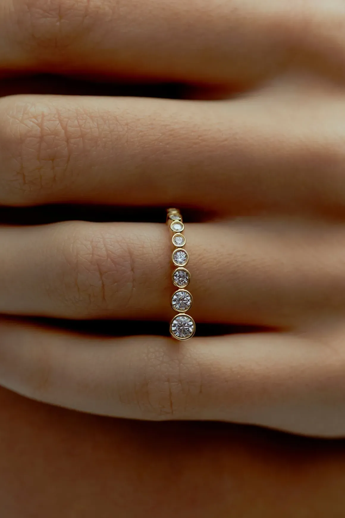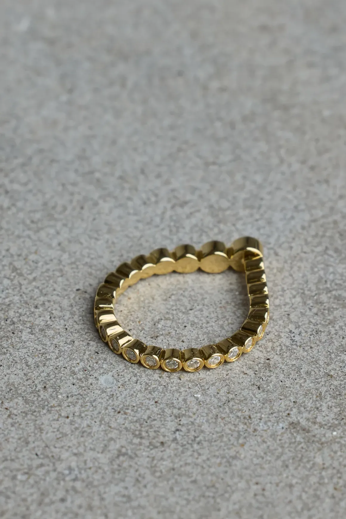 Odette ring fra Ragbag. Inspirert av kunst, arkitektur og naturens former, er denne klassiske ringen designet med en tydelig moderne vri. Odette er utsmykket med glitrende steiner i varierende størrelser som skaper et lekent uttrykk. Laget i gullbelagt sterlingsølv, tilfører den en subtil glød til ethvert antrekk. Ragbag, etablert i København i 2020, kombinerer tradisjonelt håndverk med moderne design for å skape smykker som balanserer tidløshet med en unik, kunstnerisk touch.