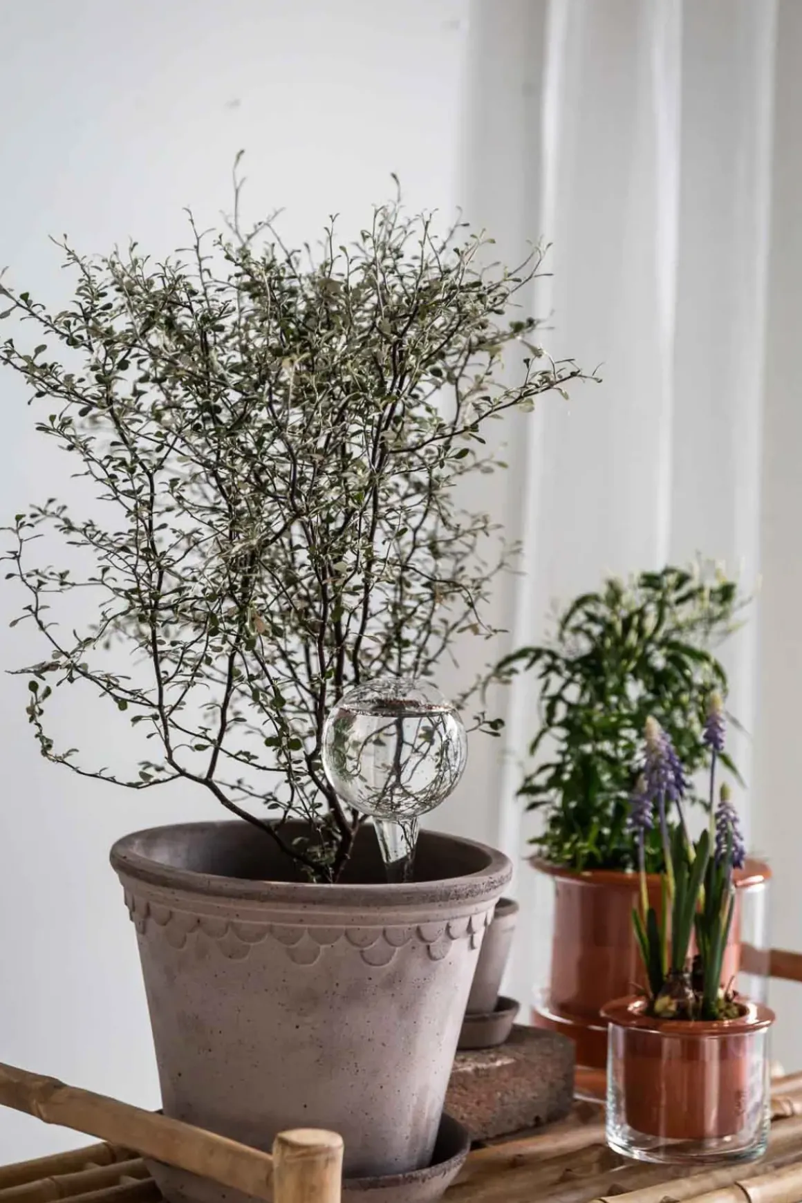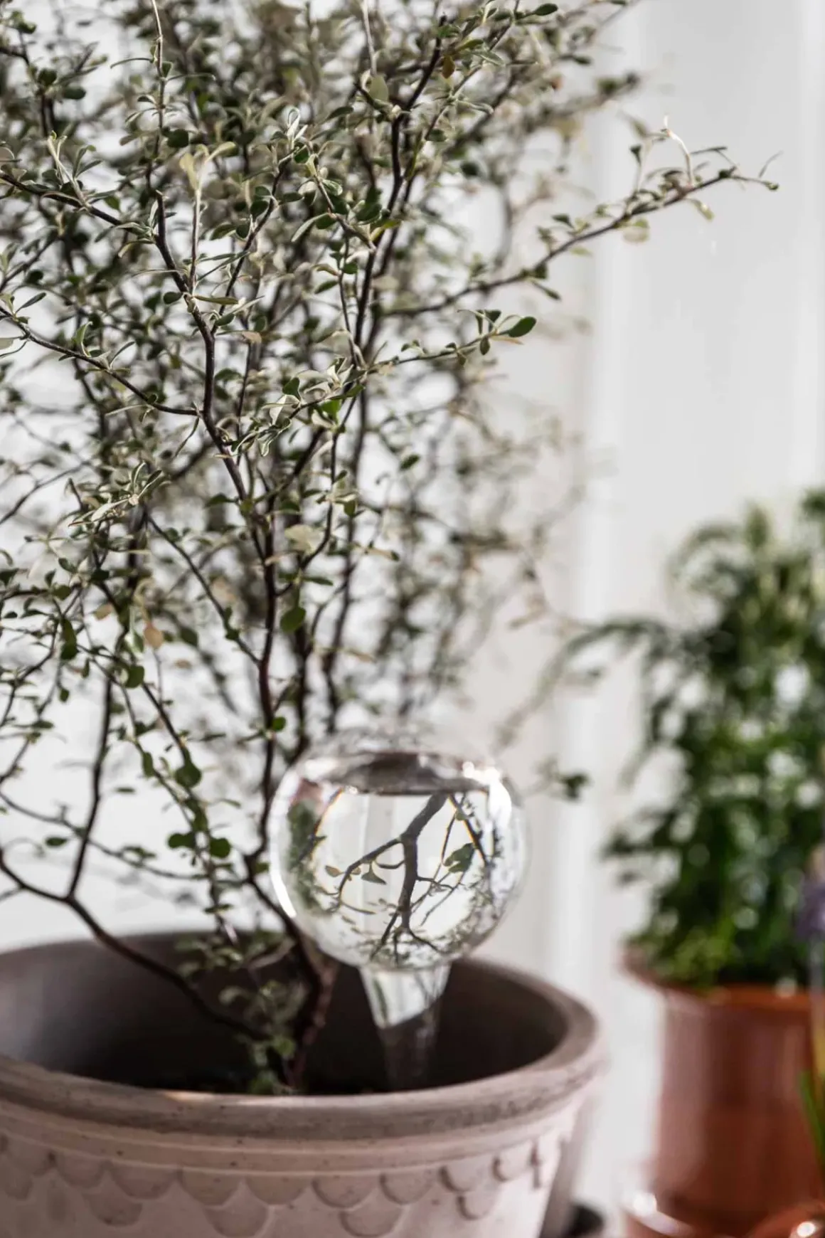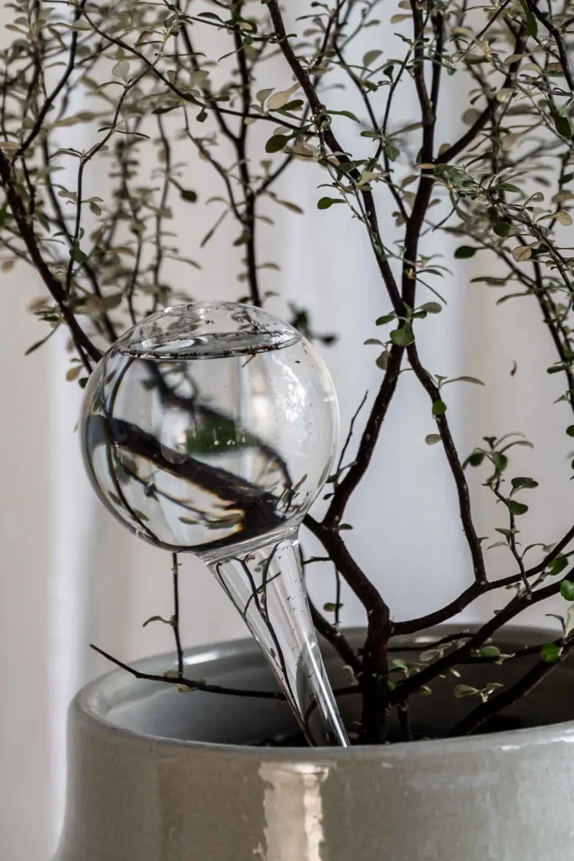 Munnblåst selvvanningsglass fra svenske Affari. Det praktiske glasset sørger for at plantene dine drikker det de trenger og får nok vann. Alt du trenger å gjøre er å fylle glasset når det er tomt og plassere det i blomsterjorden! Perfekt i det daglige og ekstra praktisk når man drar på kortere ferier.