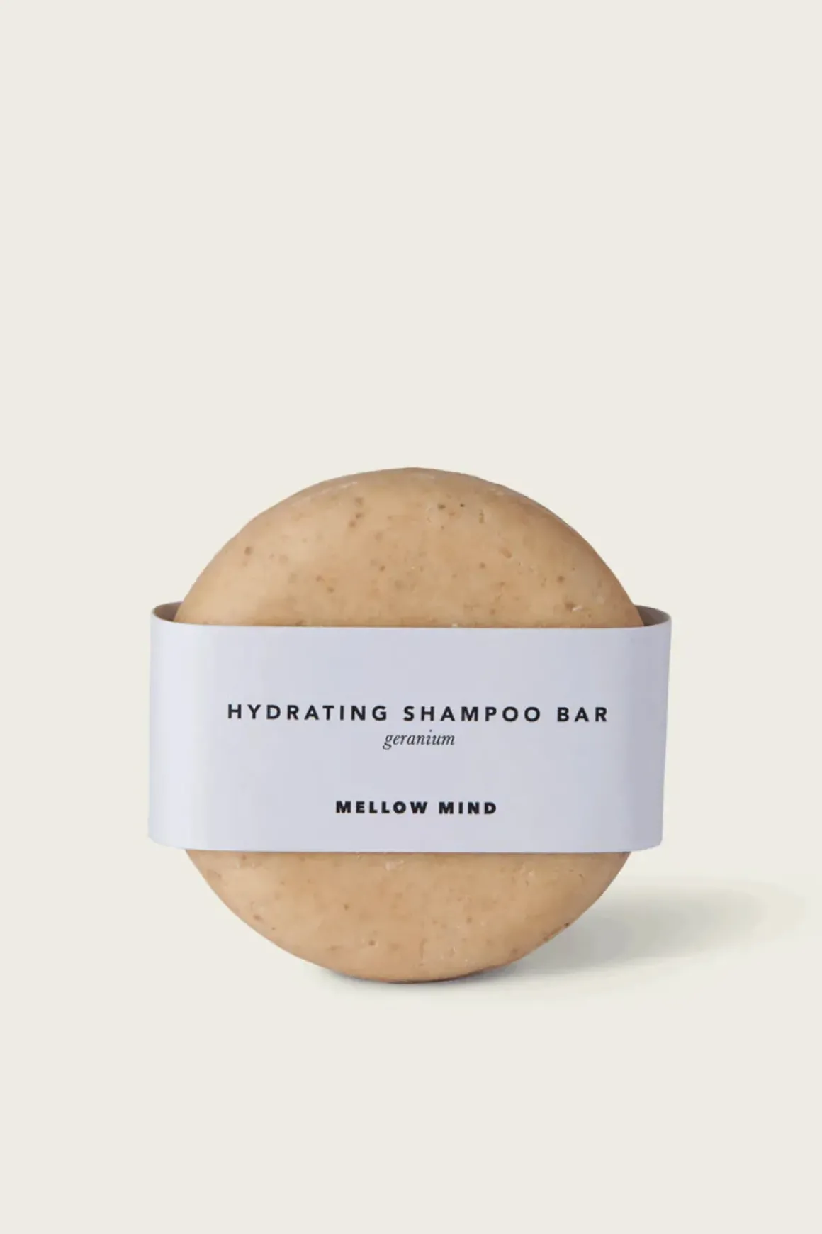 Mellow Minds Hydrating Shampoo Bar med duft av økologisk geranium nærer og gjenoppbygger tørt og skadet hår. Denne veganske sjampobaren er spesielt velegnet for deg med typisk skandinavisk hår eller en hodebunn som er normal til tørr.