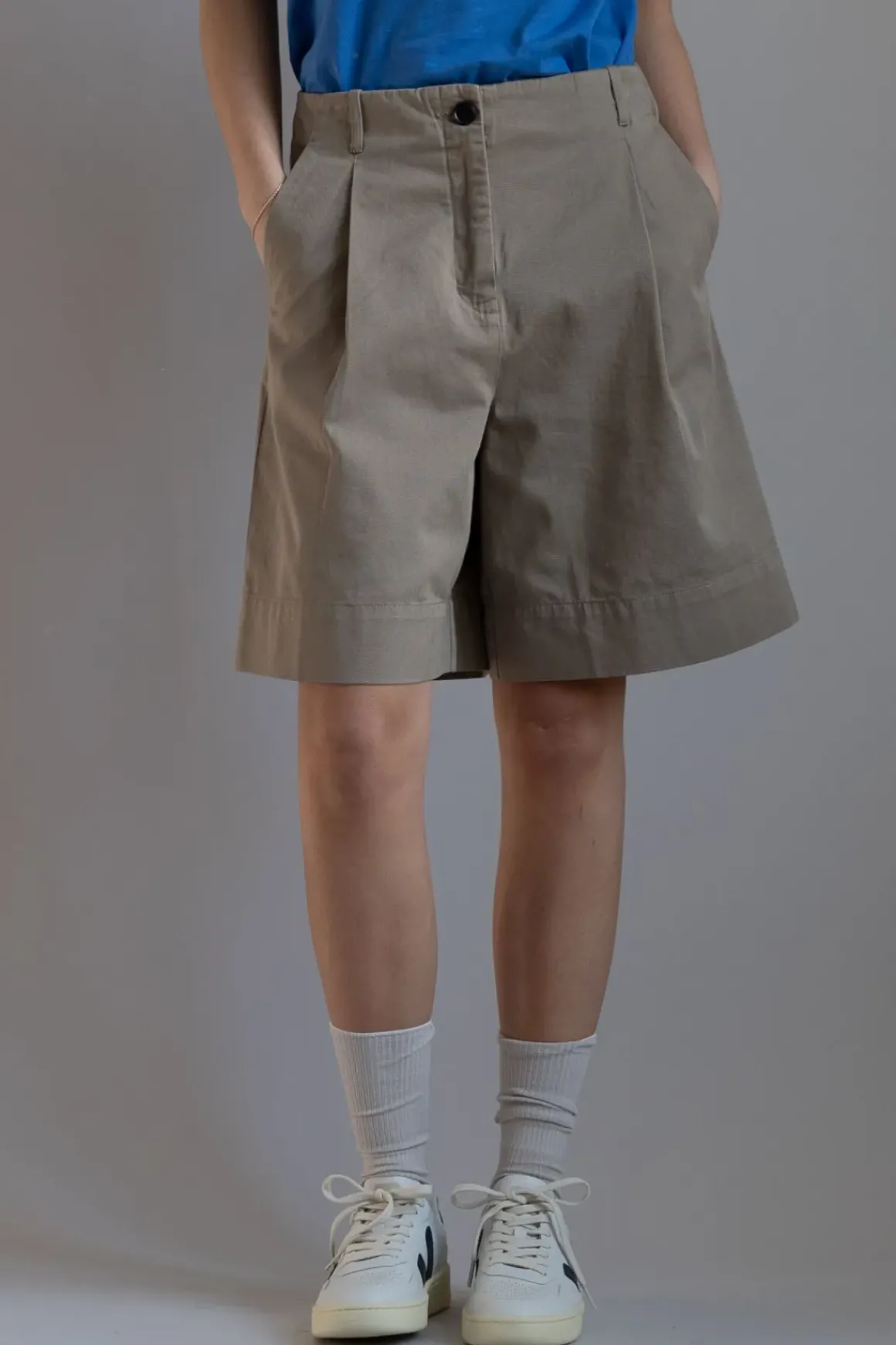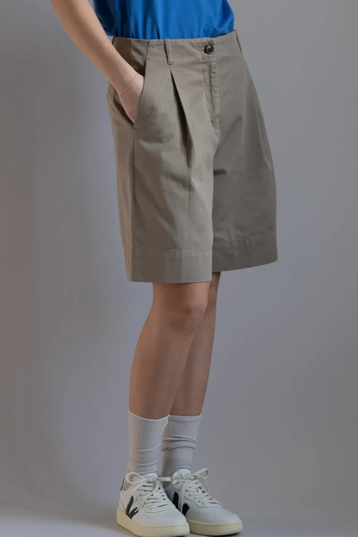 Bermudainspirerte shorts med et skreddersydd uttrykk, laget i kraftig 100 % økologisk Chetna-bomull. Willy har en skjult linning med beltehemper, skrå lommer og plissert detaljering. Shortsen er designet med kontrastfargede, håndlagde hornknapper.