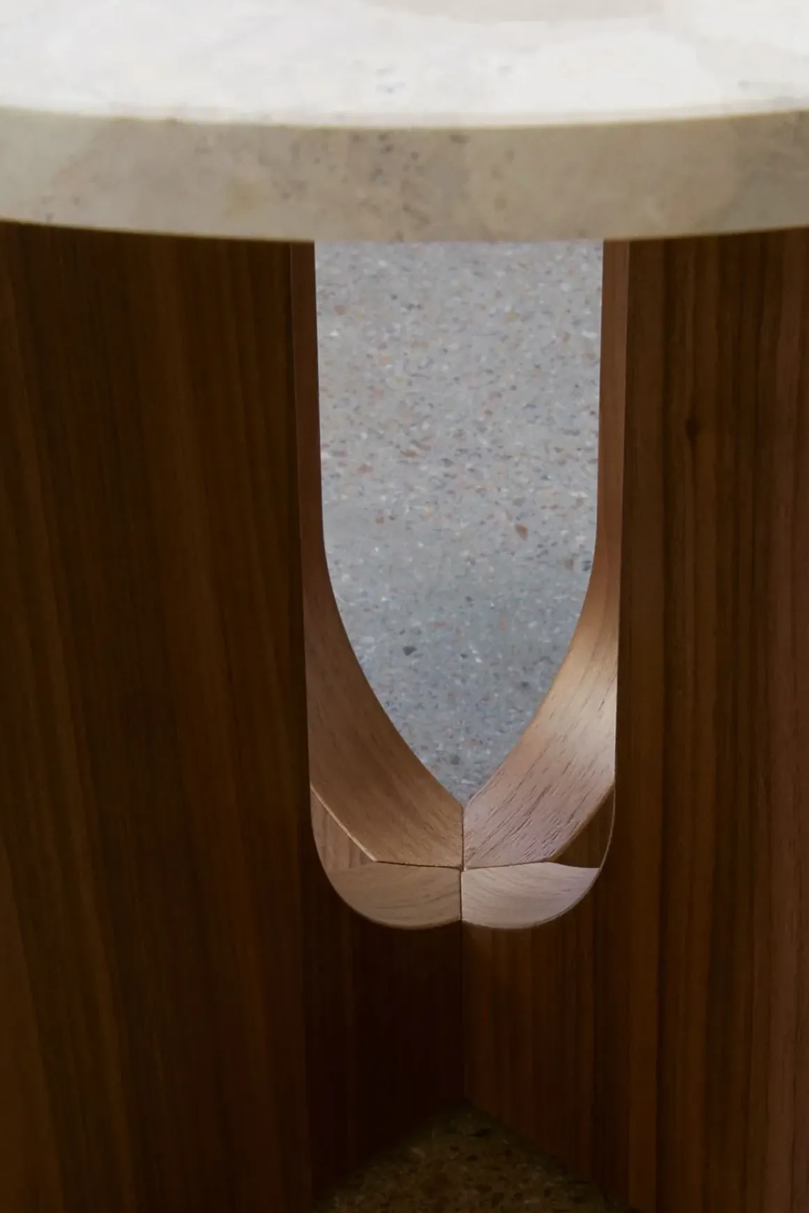 Androgyne Side Table, designet av den norske arkitekten og designeren Danielle Siggerud. Et perfekt proporsjonert sidebord med en spennende kombinasjon av maskuline og feminine elementer, med sterke kontraster mellom stein og tre. Kunis breccia-stein er kjent for sine karakteristiske årer og mineral-fragmenter i en varm beigetone. Bruk bordet som et mindre stuebord, eller som sidebord til planter, bøker og levende lys. Bordet finnes i flere varianter; understell i naturlig eik, mørkbeiset eik eller valnøtt. Bordplaten kan også bestilles i heltre istedenfor stein.