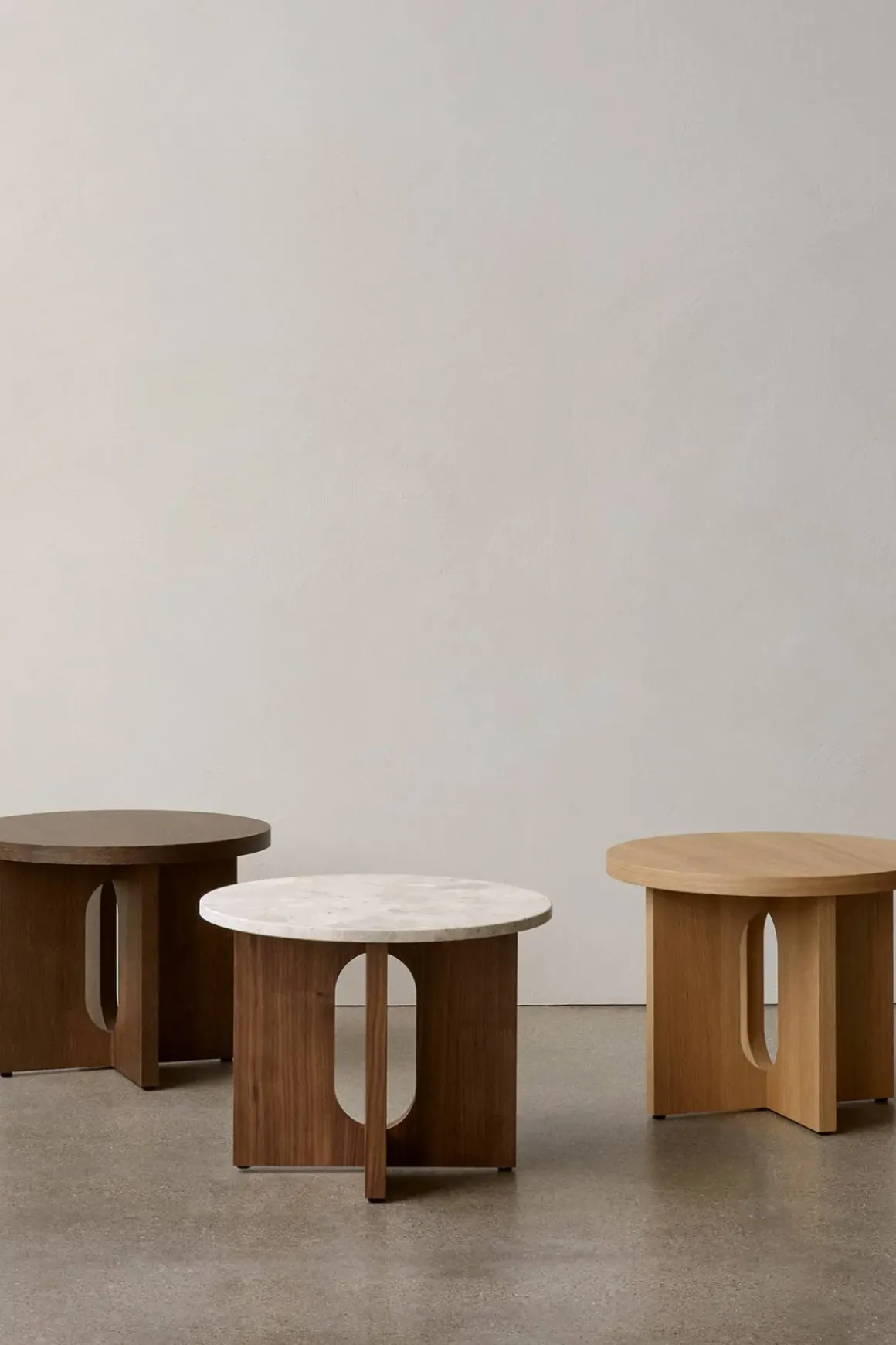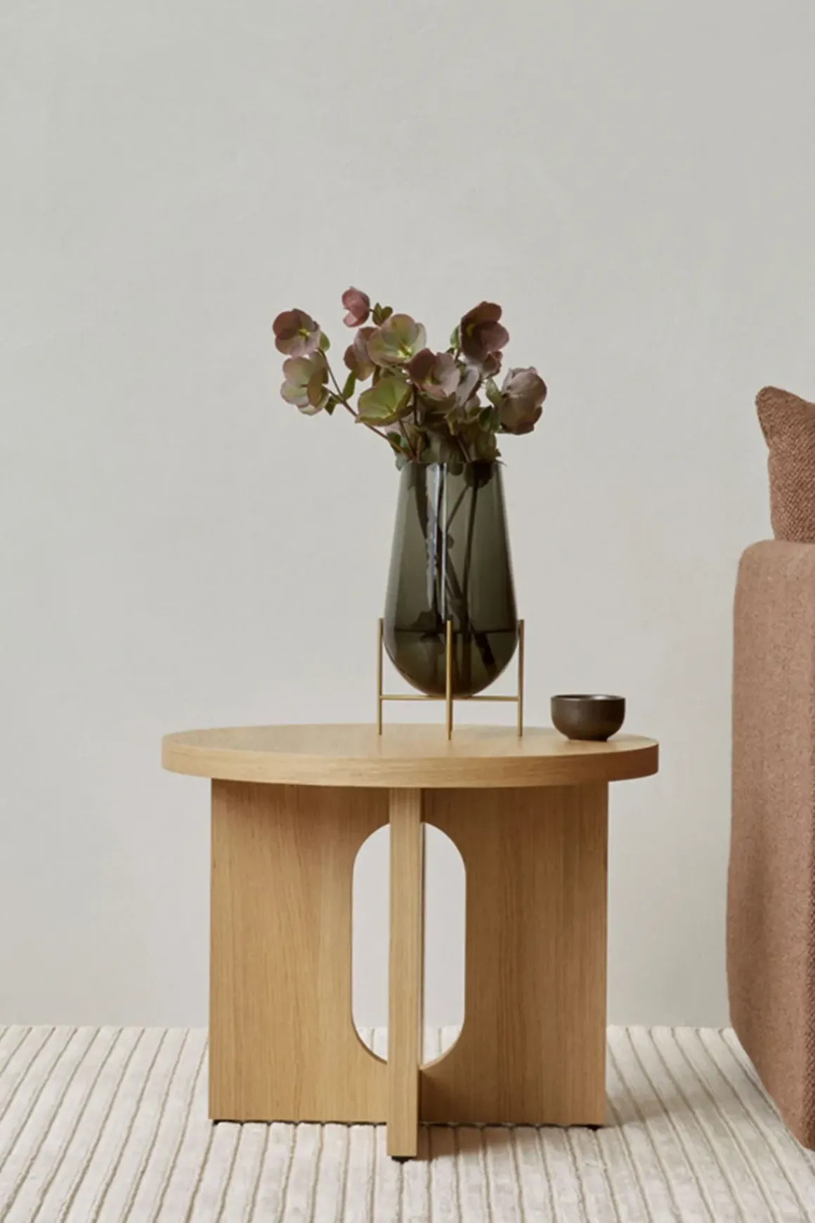 Androgyne Side Table, designet av den norske arkitekten og designeren Danielle Siggerud. Et perfekt proporsjonert sidebord med et klassisk uttrykk i eik og eikefinér. Bruk bordet som et mindre stuebord, eller som sidebord til planter, bøker og levende lys. Bordet finnes i flere varianter; understell i naturlig eik, mørkbeiset eik eller valnøtt og med bordplate i ulike typer stein.
