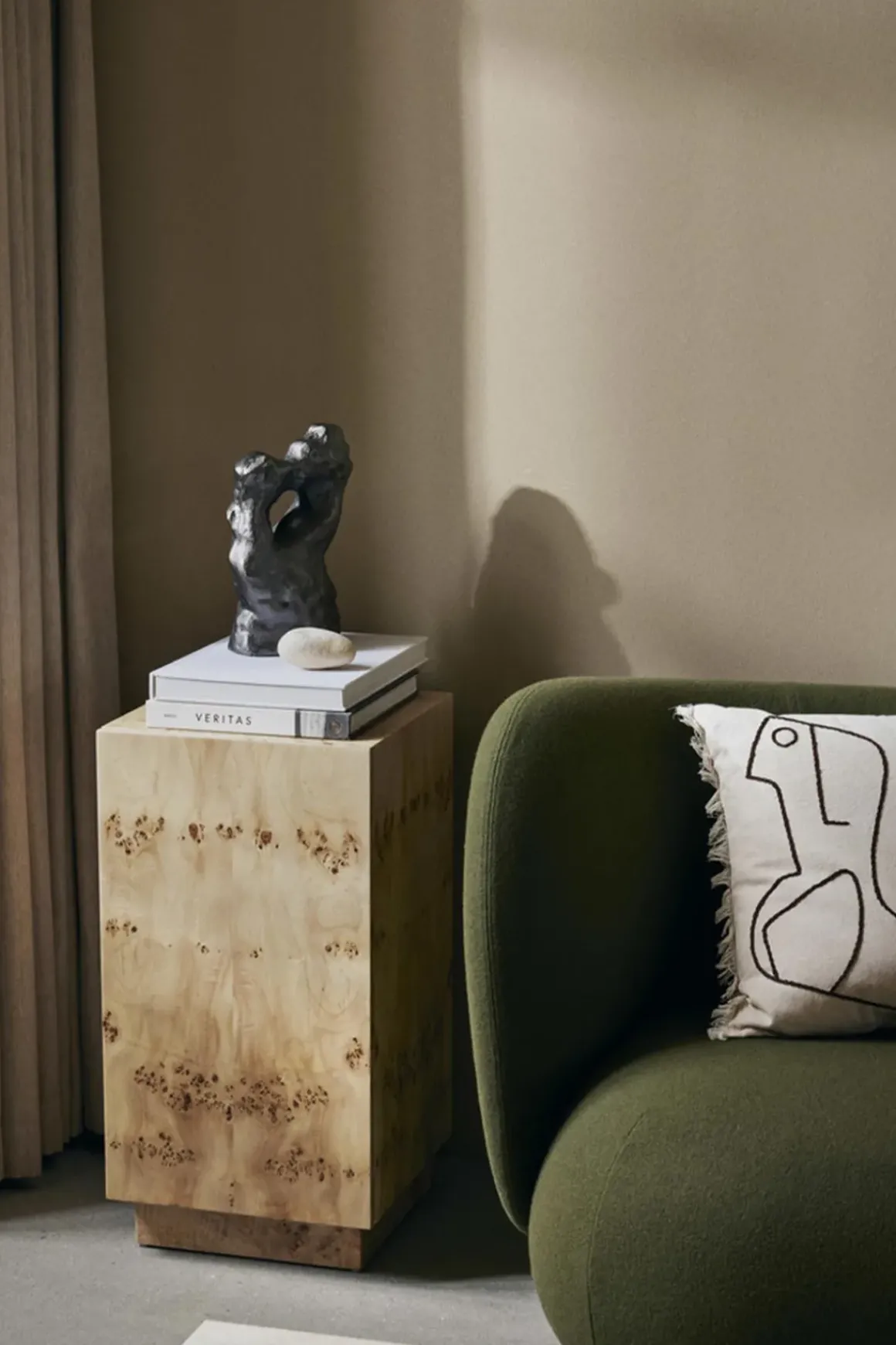 Burl Side Table fra Ferm Living er oppkalt etter treet det er laget av; FSC™-sertifisert burl-tre med et vakkert, naturlig mønster. Bordet er dekorativt og allsidig og kan fungere både som nattbord, sidebord eller pidestall til utstilling av utvalgte favorittgjenstander. Den skjulte oppbevaringen inni gjør bordet enda mer praktisk, inkludert en justerbar hylle du kan flytte og tilpasse etter behov.