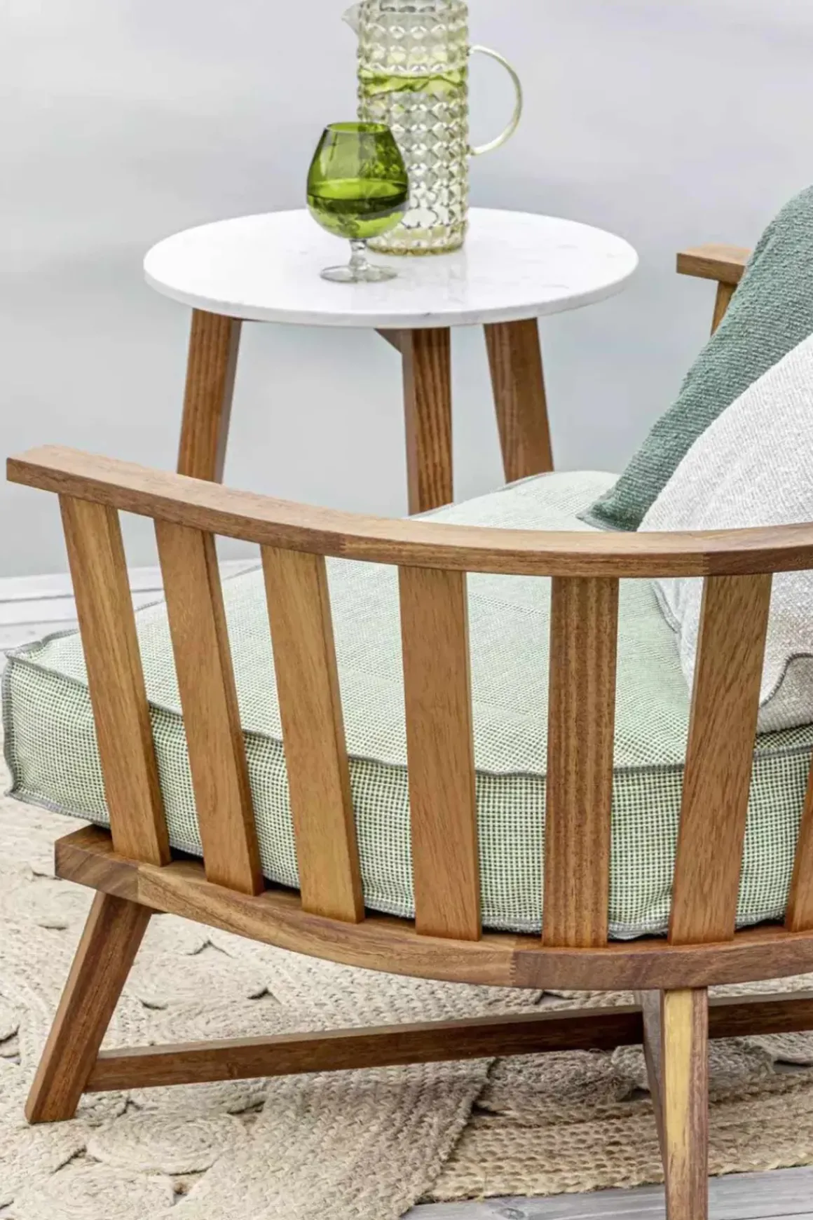 Sidebord Inout 744 fra italienske Gervasoni, designet av Paola Navone. Inout-kolleksjonen er en bred og variert samling av stoler, krakker, lenestoler, sofaer, bord og tilbehør som skildrer de utallige måtene Gervasoni forestiller seg å tilbringe tid utendørs. Sidebordet er klassisk med tre ben i oljet iroko som støtter en slank, rund bordplate i hvit, eksklusiv Carrara-marmor. Iroko er et spesielt slitesterkt tre fordi den er naturlig motstandsdyktig mot vann og fuktighet, og egner seg derfor spesielt bra til utemøbler. Sidebordet er tilgjengelig i to størrelser og er perfekte til kaffe-eller avlastningsbord ute på terrassen. Kombiner med andre møbler fra Inout-serien for å komplettere looken og få den luksuriøse resort-følelsen hjemme.