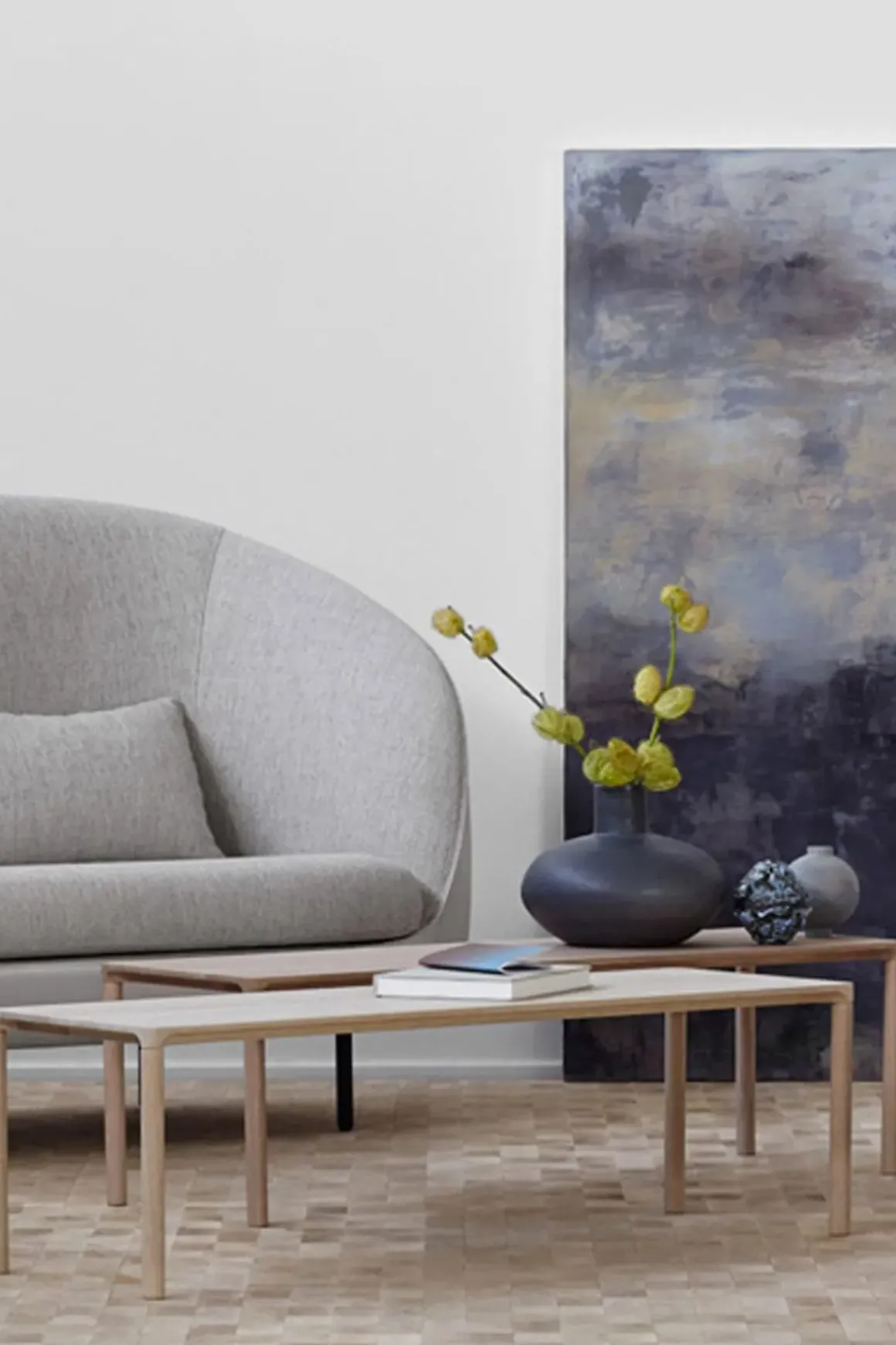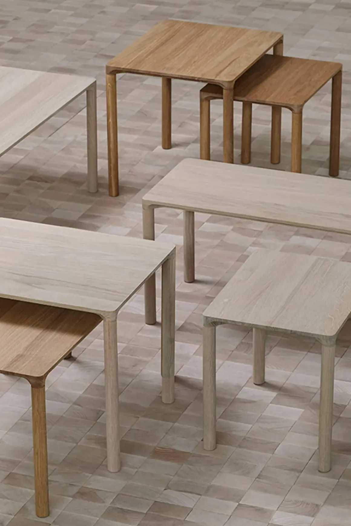 Piloti er et enkelt og minimalistisk bord i såpet eik fra danske Fredericia med subtil eleganse i materialenes kvalitet og overflate. Piloti-serien er designet av Hugo Passos for Fredericia og ble lansert i 2016. Den slanke bordplaten avløses av smekre og avrundede bordben i bordets fire hjørner. Til tross for det sarte designet er dette et svært robust bord som passer perfekt i alle hjem. Piloti-bordets allsidighet åpner for et bredt spekter av muligheter og bruksområder, som sidebord eller sofabord. Bordet er laget i solid eik og alle modeller kommer i to forskjellige høyder; 35 cm og 41 cm som gjør at man for eksempel kan sette to bord i ulik høyde i hverandre. Piloti fås i såpet-, oljet-, lakkert- eller røkt eik og bordet er svært enkelt å montere da bena lett kan skrus ut for å lette transport eller oppbevaring. Har du spørsmål om Piloti eller Fredericia, så ta gjerne turen innom butikken vår på Stabekk.