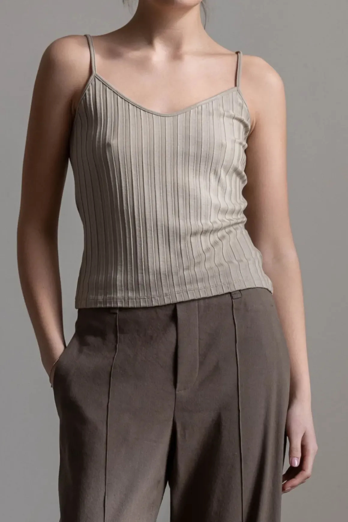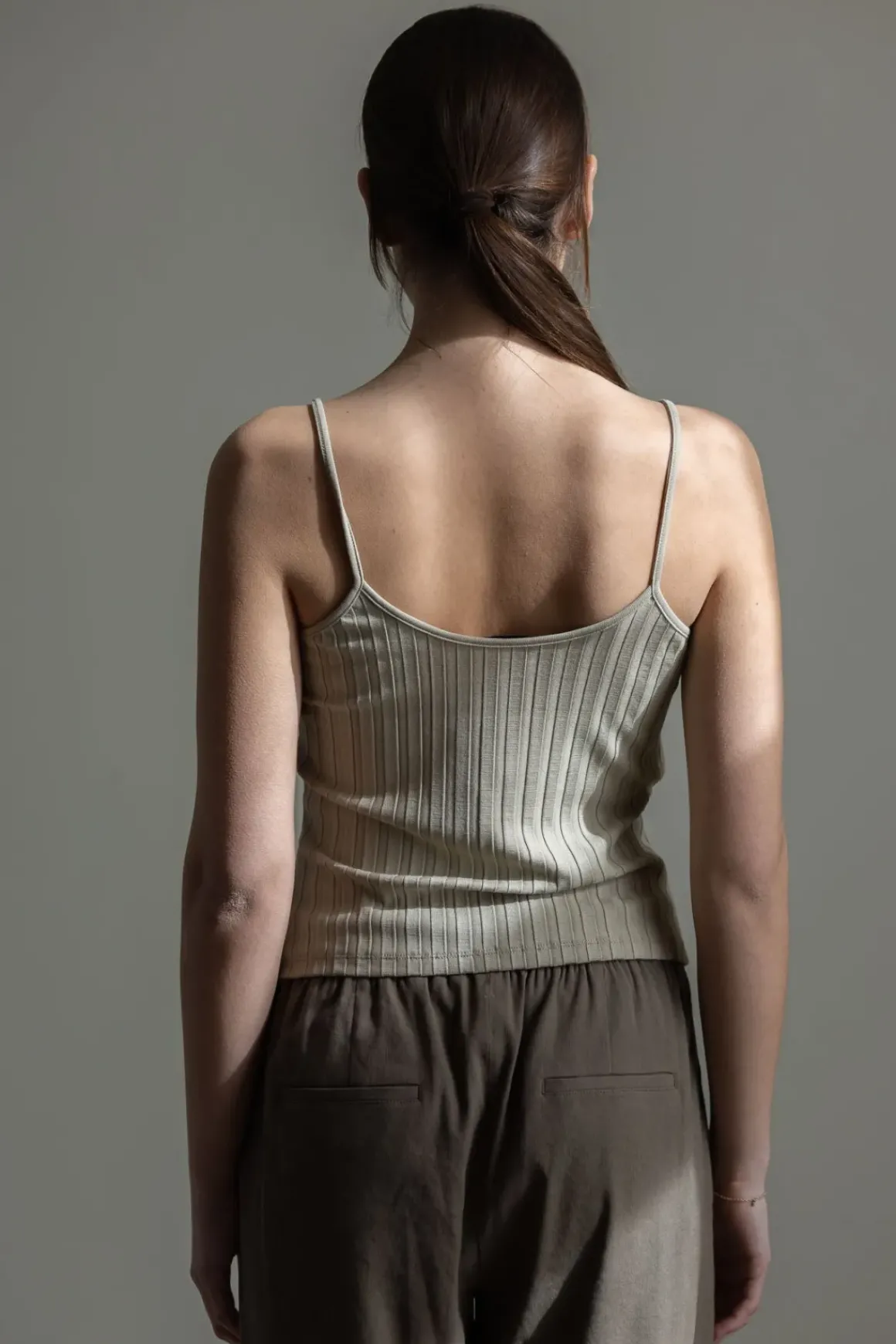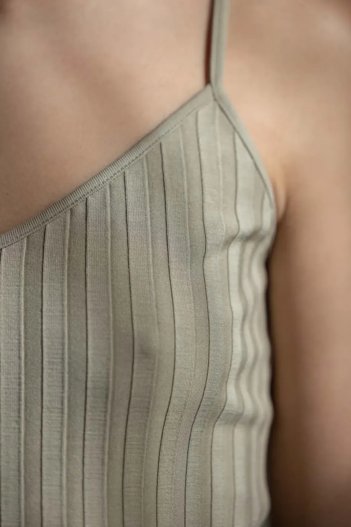 Ribbestrikket singlet fra Vince i myk og elastisk modalblanding. Den har tynne stropper, dyp utringning og kroppsnær passform med smale ribber som gir en flatterende silhuett. Et komfortabelt basisplagg med glatt finish og god hold, perfekt under skjorter, cardigans eller alene på varme dager.